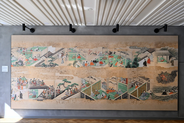 本学大宮キャンパスの図書館に所蔵される奈良絵本『竹取物語』をグラフィック化して展示しています。『竹取物語』はわが国物語文学の祖と言われる作品で、原形は、仏教経典「月上女経」にあります。利用者に「龍谷物語」を紡いでもらうことを願って、龍谷大学発祥の地である大宮キャンパスに物語文学のはじまりを展示することとしました。