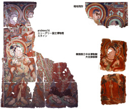 現在の中国、新疆(しんきょう)ウイグル自治区トルファンの地に11世紀ごろ栄えた西ウイグル王国は、仏教を信奉し、石窟に華麗な仏教壁画を描かせた。しかし、イスラム教の浸透や、列強の探検家に持ち去られるなどして、壁画の多くは失われ、世界中に散逸してしまった。 大谷探検隊のシルクロード探検と縁のあった本学では、NHKと共同で、この石窟のうち、特に文化的価値が高いといわれる第4号窟の壁画の断片データを収集し、それらを基にコンピュータ・グラフィックス技術で仮想的に復元することになった。 ジグソーパズルを完成させるような緻密さ この研究は、研究センターの2つのプロジェクトチーム(デジタルアーカイブ研究グループと、コンテンツ情報研究グループ)と、NHK新シルクロードプロジェクトチームが共同で、イギリスの大英図書館、ロシアのエルミタージュ国立博物館、韓国国立中央博物館、インドのニューデリー国立博物館、ドイツのベルリン国立インド美術館、東京国立博物館、龍谷大学学術情報センター、そして中国政府・ベゼクリク現地所蔵の壁画の情報を集めるところから始まった。 これだけ多くの国の機関が協力することだけでも驚きだが、そもそもどうして壁画の断片がこれほどまでに分散してしまったのか。 「壁画は重いので、各国の探検隊はラクダに積める分量だけを切り出して持ち帰ったのです。部分的に持ち帰るのなら顔のほうに価値があると考えるのは自然でしょう。持ち帰った個所は正直、適当だったと思いますね」(岡田教授) 各国から集められたコンテンツのデジタル化とネットワーク化により、研究が徐々に進んでいった。だが、各国に残る断片や図版資料は完璧なものばかりではなく、資料が失われている部分は、下絵の特徴や別の石窟の構造を参考にし、色合いや寸法をミリ単位で一致させ、1年の歳月をかけて完成させた。まさに気の遠くなるような作業の連続である。 最新の画像技術を駆使し、世界初の3次元CGで再現された壁画は「誓願図」と呼ばれるもので、「前世の釈迦が、過去仏と遭遇する」という主題である。過去仏の足が汚れないようにと足元に自らの髪を敷き詰めたり、出家を志して髪を剃る姿などが、鮮やかな色彩で描かれている。 NHKで放映された映像は、デジタル復元した壁画を、3次元のバーチャル・リアリティー(仮想現実)で画面上に表現している。あたかも狭い回廊内を歩きながら壁画を見ているような感覚をビジュアルに作り出し、石窟の暗さや、光の当たり具合まで、リアルに再現することにこだわった。