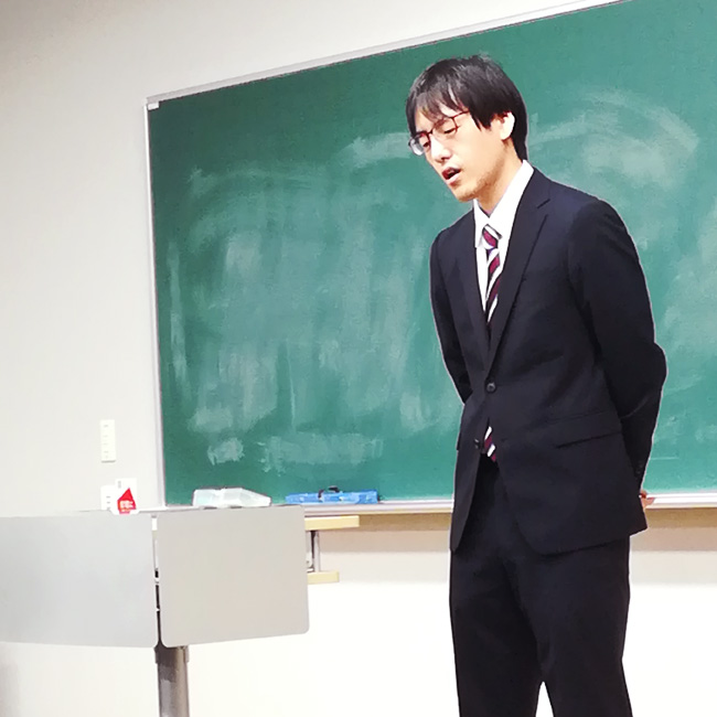 今回の講演で、特に印象に残っているお話は、「明確な目標を持ち、それに向かって計画を立て、努力すること」、「相手の立場に立って考えること(出題者の意図を考えて答えること)」が大事だということです。これらのことは、新司法試験対策を通じて学ばれたことだと伺いました。これらを意識しながら行動していくことは、これからの就職活動や定期試験対策などにも通じる、大切な考え方だと思いました。私自身、就職という目標に向かって計画を立てていましたが、その計画が本当に就職するために最善の計画なのかどうか、もう一度見直すきっかけになりました。その見直しの際、様々な方たちと関わることの大切さもあらためて学ぶことができました。