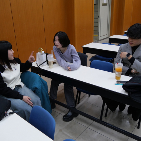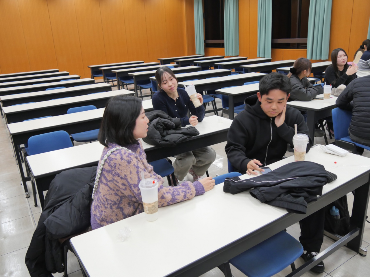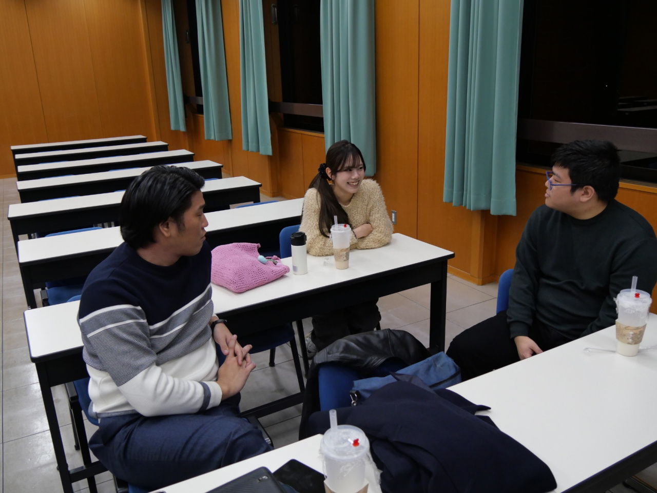 その後、クイズの賞品のドリンクを飲みながらなごやかな雰囲気の中、在学生と卒業生がこれまでの、そしてこれからの歩みなどについて語り合いました。