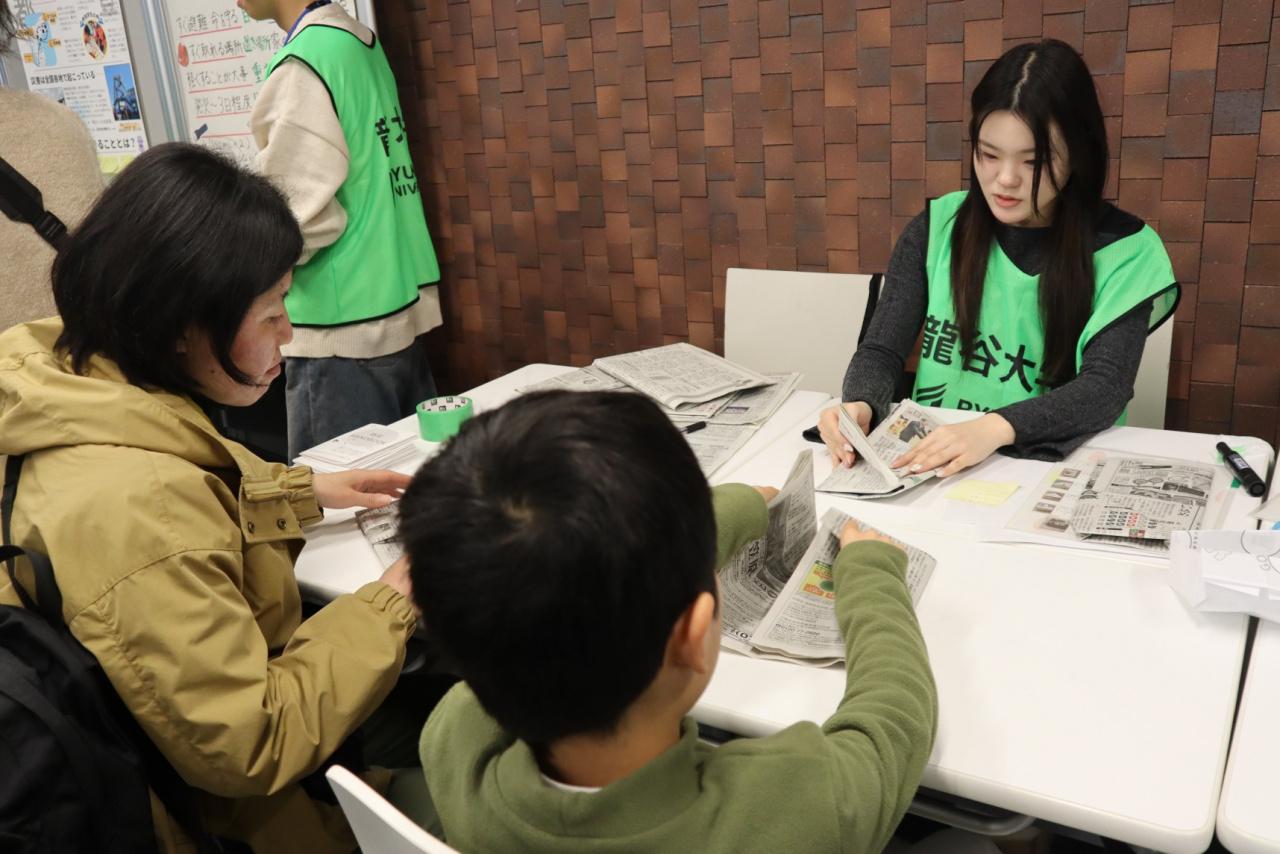 まずは、学年混合のグループが作られ、「龍谷大学に関する○×クイズ・グループ対抗戦」が実施されました。クイズの答えを話し合うことを通して、学年を越えた交流が深められていきました。