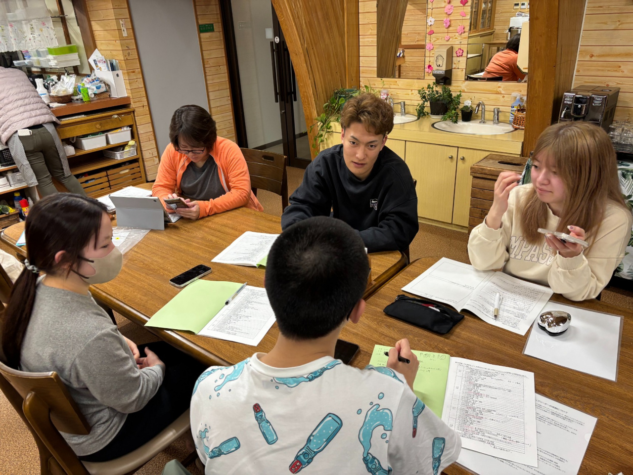その後、宿泊する能登町のセミナーハウス山びこへ。夕食後にはその日のふりかえりとして学んだこと・感じたことを一人ずつ言語化し、リーダーを中心に翌日の珠州でのサロン活動の打ち合わせも行いました。