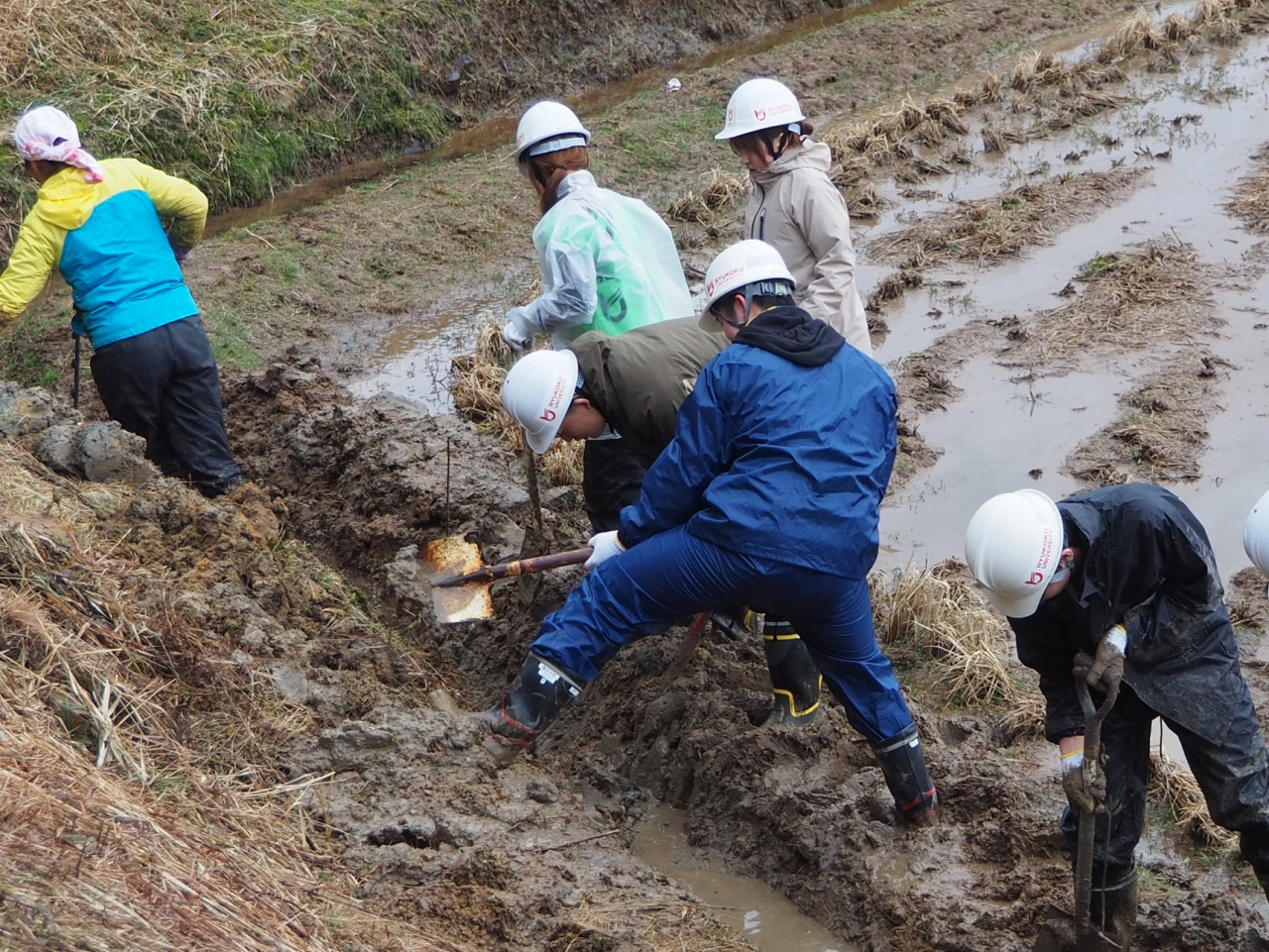 3/7PM 大谷地区の土砂で埋まった田んぼの水路の泥出し作業