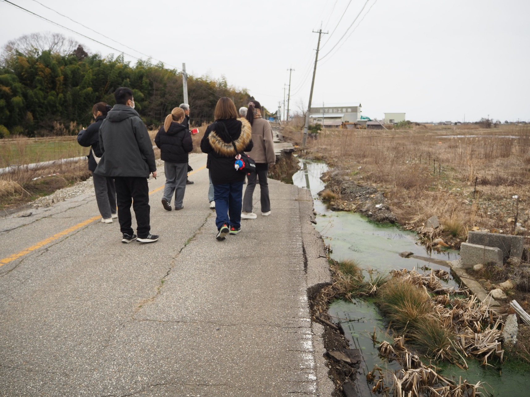 3/6PM 『リブート珠洲』の案内の下、珠洲市柏原地区を視察。被害の様子を実感しました。