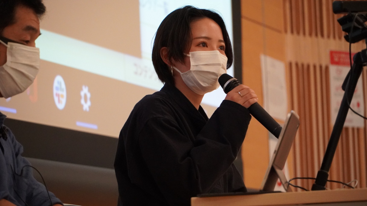 こちらも、先輩からの体験談を聞く場が設けられ、コミュニティマネジメント学科卒業生の田中 直樹さんとコミュニティマネジメント学科4回生の和田 育実さんに登壇いただきました。
