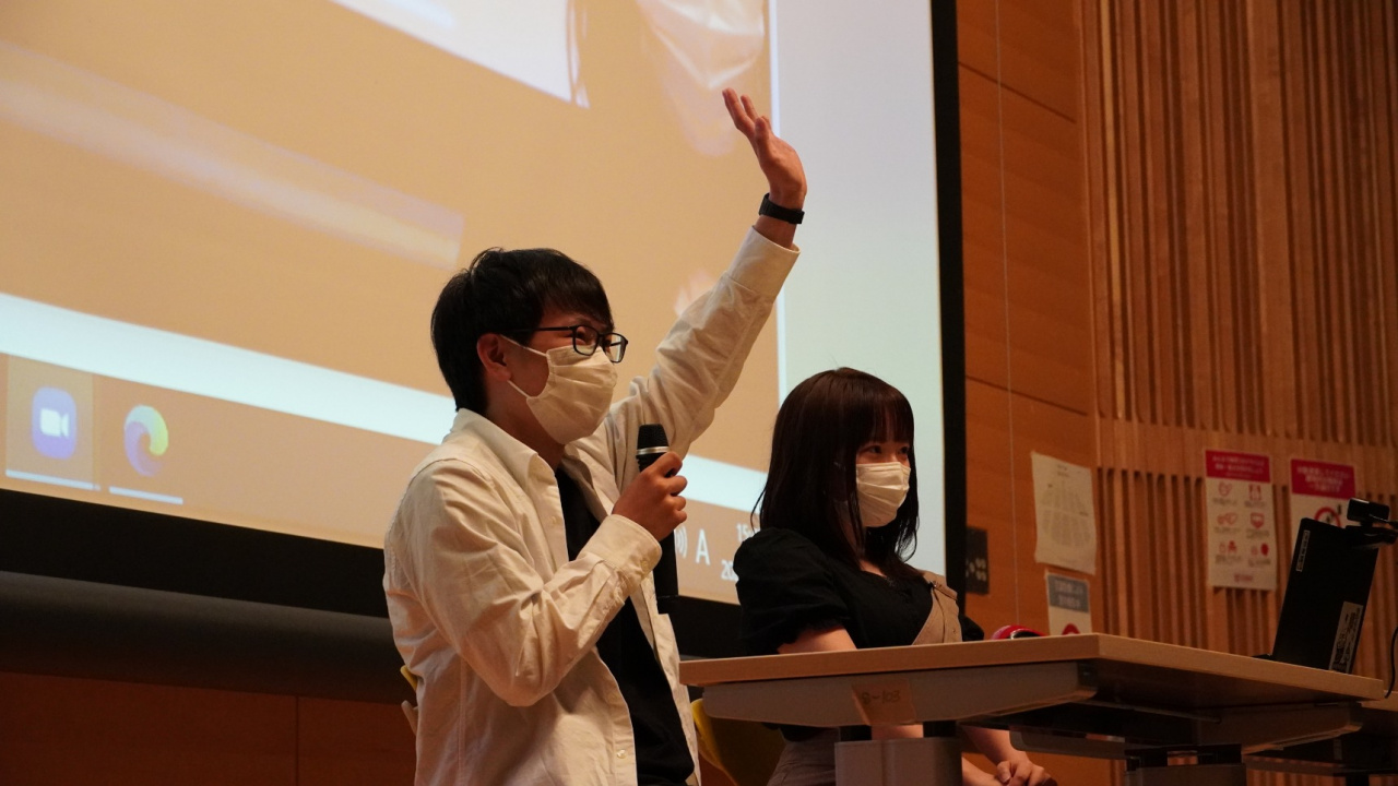 また、先輩からの体験談を聞く場が設けられ、コミュニティマネジメント学科4回生の山田 梨央さんとコミュニティマネジメント学科3回生の福留 大陽さんに登壇いただきました。