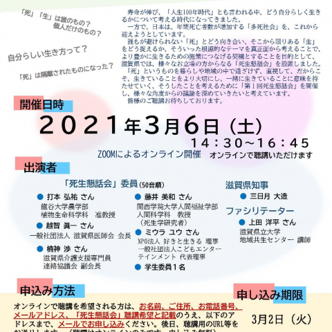 ご自身の「いのち」を大切にすること、ご家族や友人など大切な人の「いのち」を大切にすること、厳しい状況におかれ力を尽くしてくれている方々に感謝することを忘れず、龍谷大学生として責任を持った行動を心がけてください。