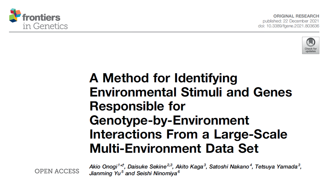 タイトル:A Method for Identifying Environmental Stimuli and Genes Responsible for Genotype-by-Environment Interactions From a Large-Scale Multi-Environment Data Set