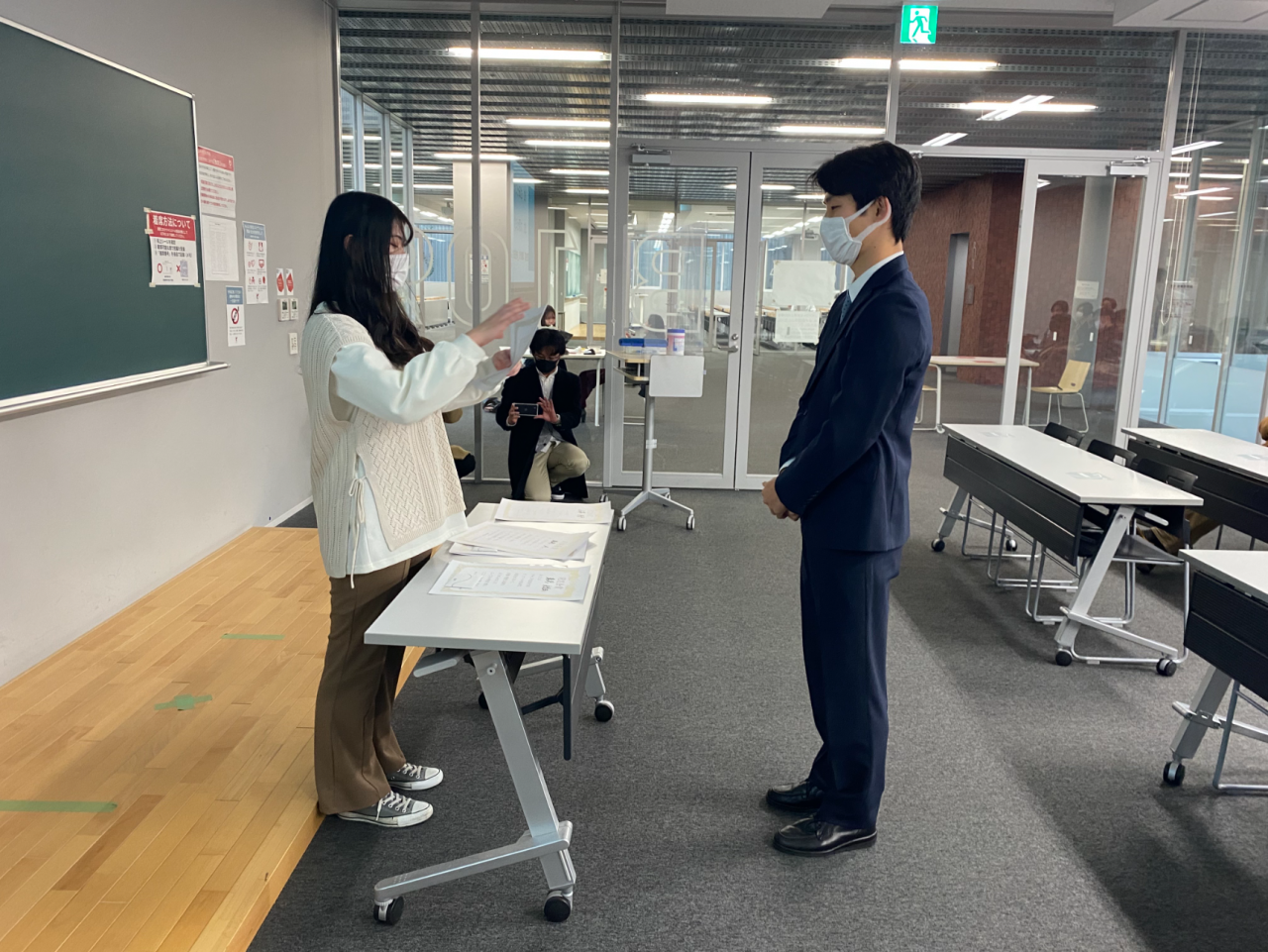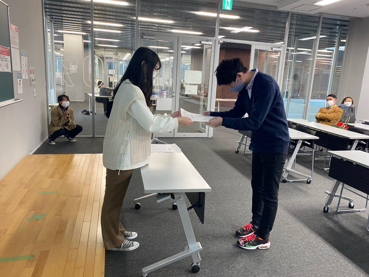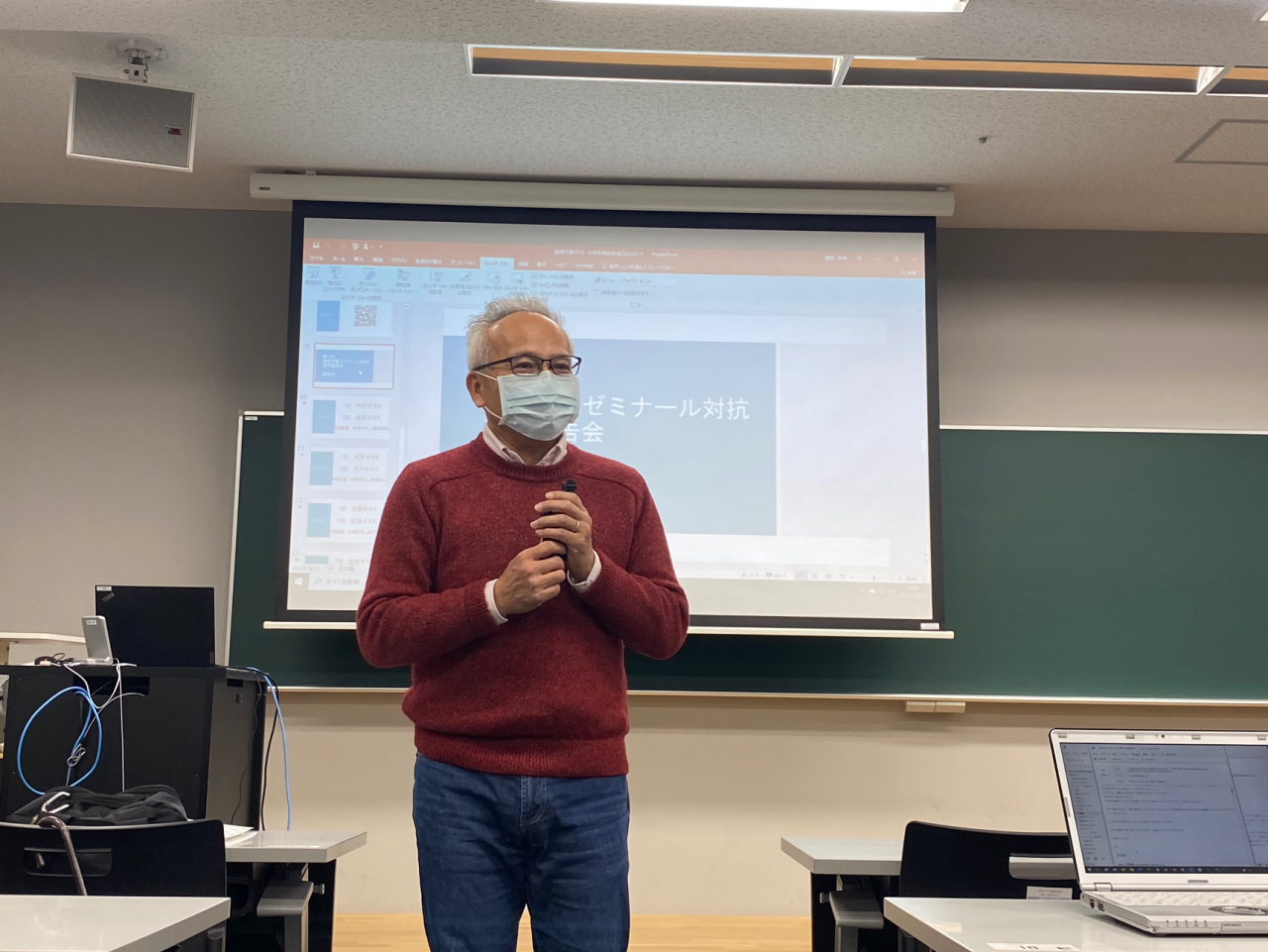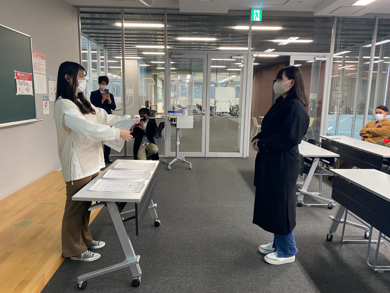 今年度の経済学部ゼミナール対抗研究報告会はオンラインで開催されましたが、表彰式については人数を制限するなど、三密対策を講じた上で対面で実施しました。