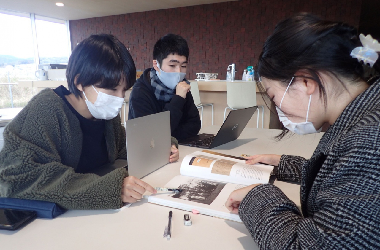 国際学部博物館学芸員課程の学生3名は、パネル展示や説明文を考える、などをおこないました。