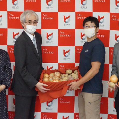 京丹後森本アグリ株式会社、まんぐるわ三重・森本の皆さまから 食品の寄贈いただきました【政策学部】