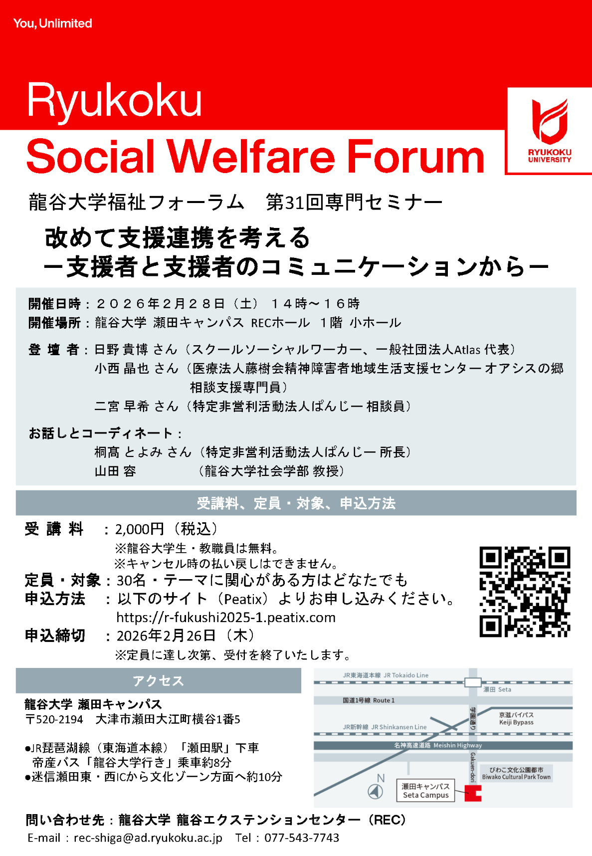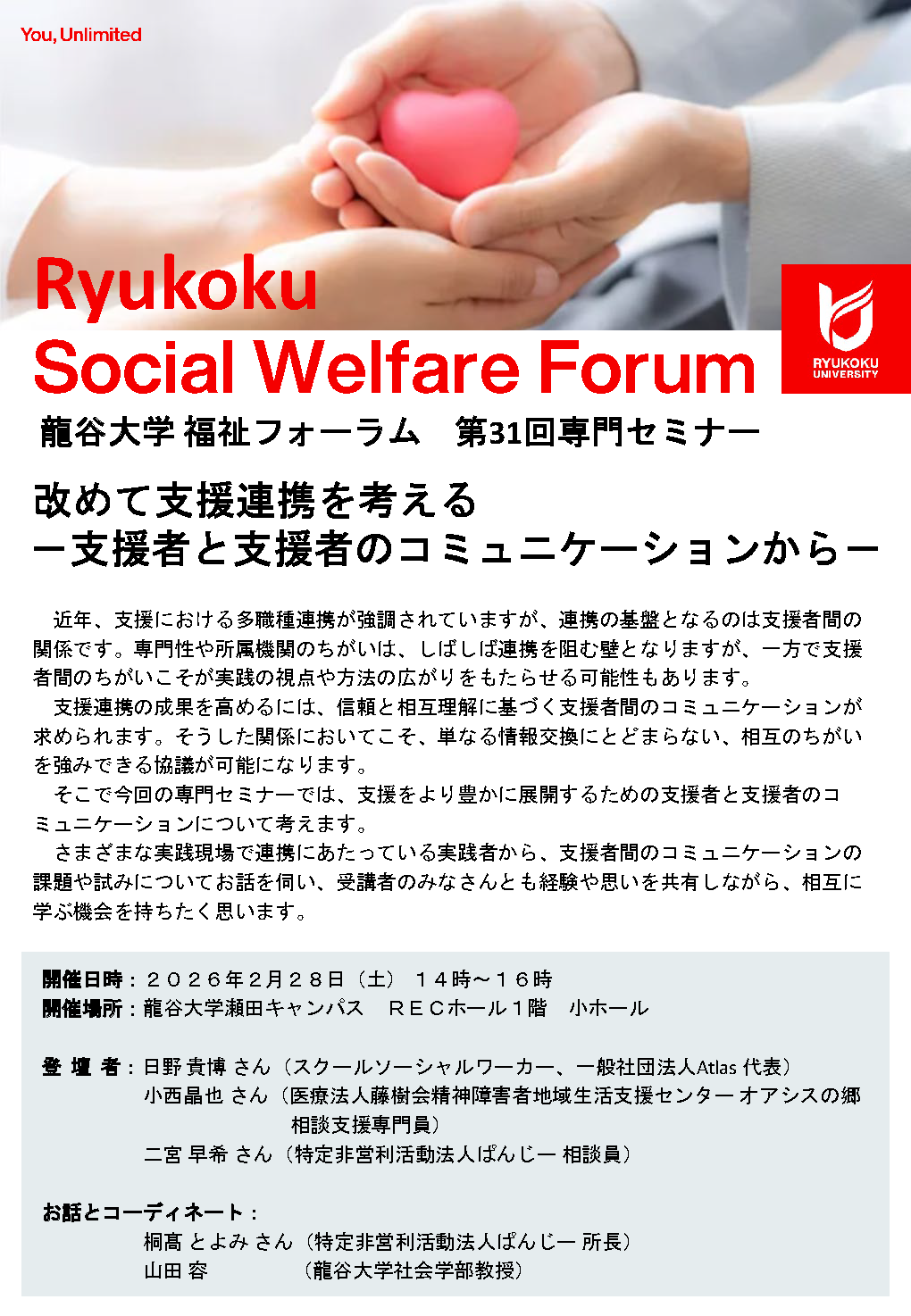 【龍谷大学福祉フォーラム】第31回専門セミナー「改めて支援連携を考える-支援者と支援者のコミュニケーションから-」