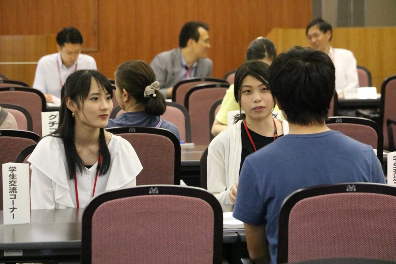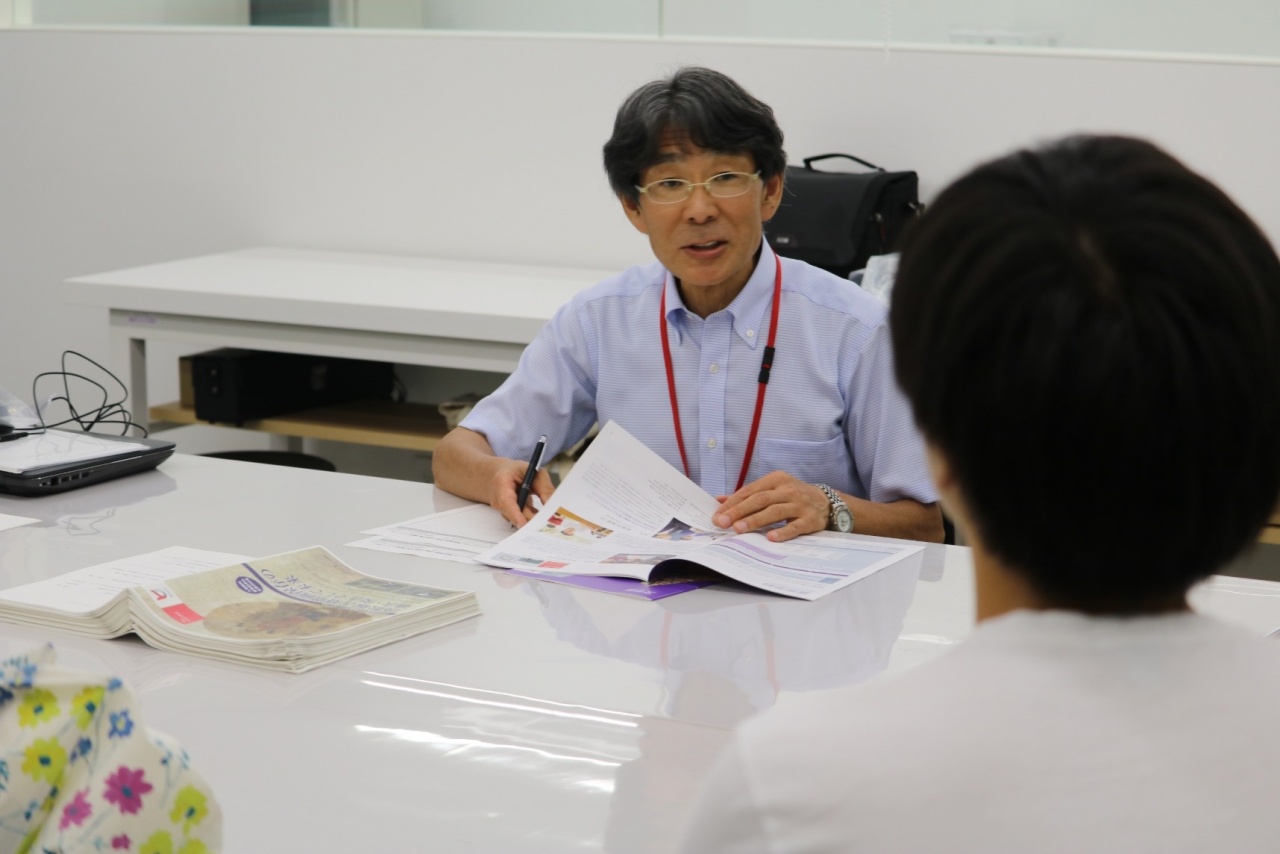 学部共通セミナーで作成された文学部生による壁新聞を展示するとともに、教員による講義やカリキュラムなどの質問に応える個別相談コーナーおよび現役学生による学生交流コーナーを設置し、学生生活やキャンパスの様子、現役学生の生の声を笑顔で聞いていただけました。
