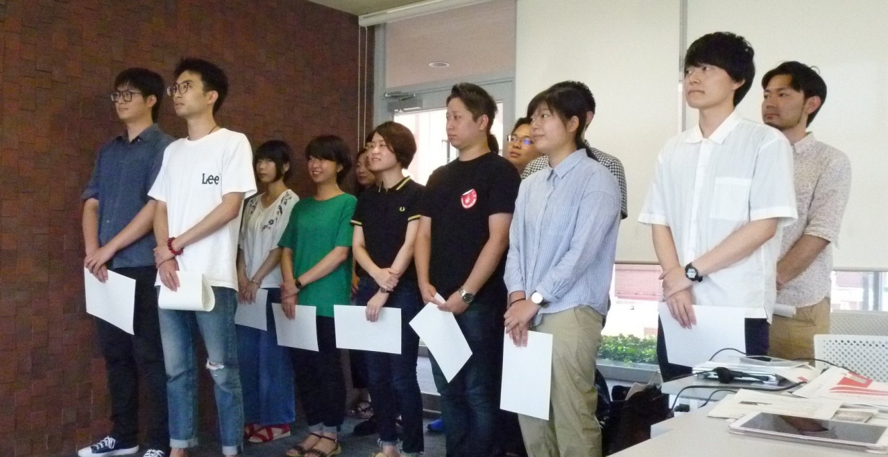今学期の学習は、①龍谷大学・京都産業学センターが編集したブックレット『イシダ』(2015年)の輪読、②イシダの岩崎佳生総務人事部長様をお招きしての講演、③同社の滋賀事業所(5月21日)を訪問しての工場見学と上野誠一専務取締役様をはじめとするみなさんとの懇談を行いました。そのうえで、7月23日(火)の夜には、岩崎部長様にもご参加いただき、「学生から見たイシダの魅力」をテーマにした成果報告会を開催しました。