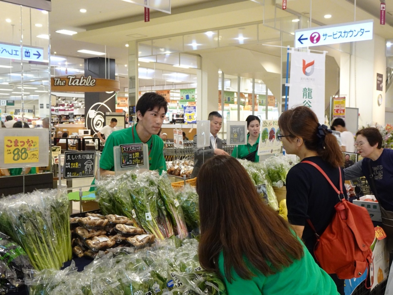 4月から6月にかけて食料農業システム学科の淡路ゼミ・山口ゼミ・金子ゼミの学生がイオンスタイル大津京店やイオンモール草津で滋賀県産の野菜を販売しています。