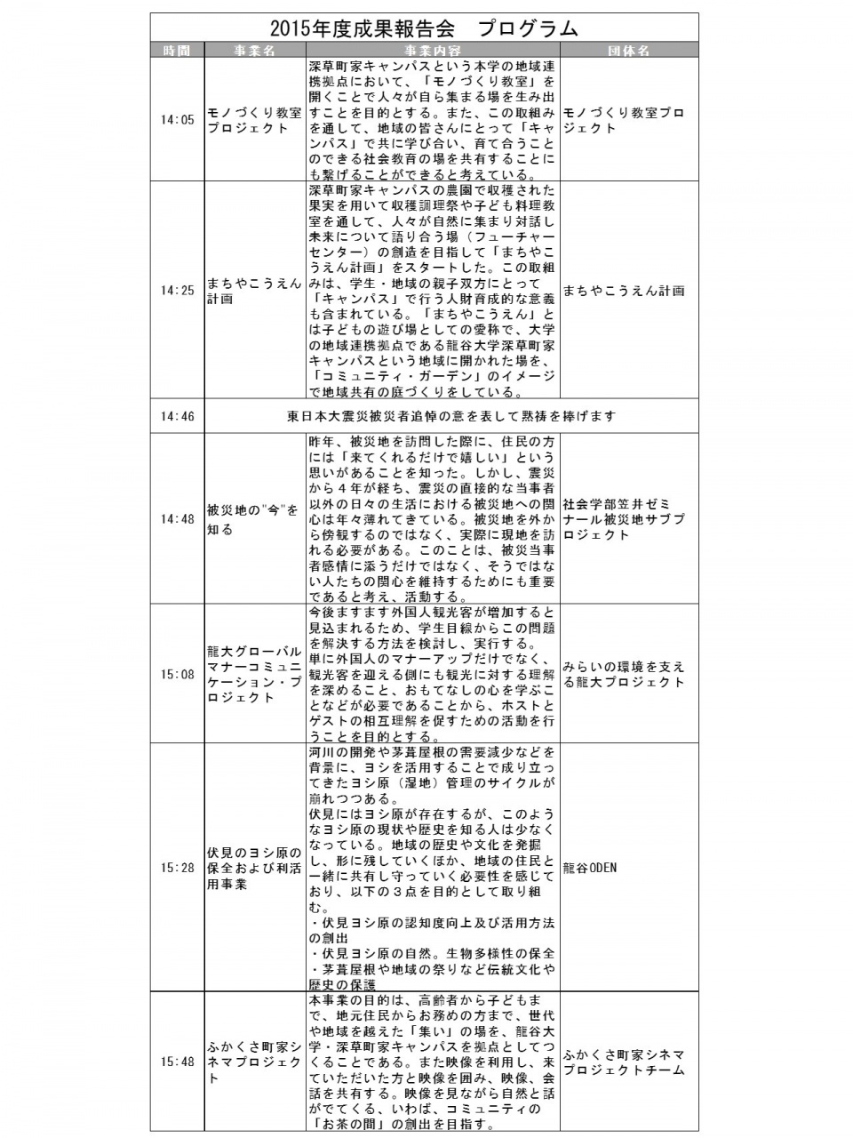 龍谷大学生の主体的な学びに資する自主的な社会連携・社会貢献活動に対し支援する社会連携・社会貢献活動支援制度「with龍(ドラゴン)」の2015年度成果報告会を開催します。