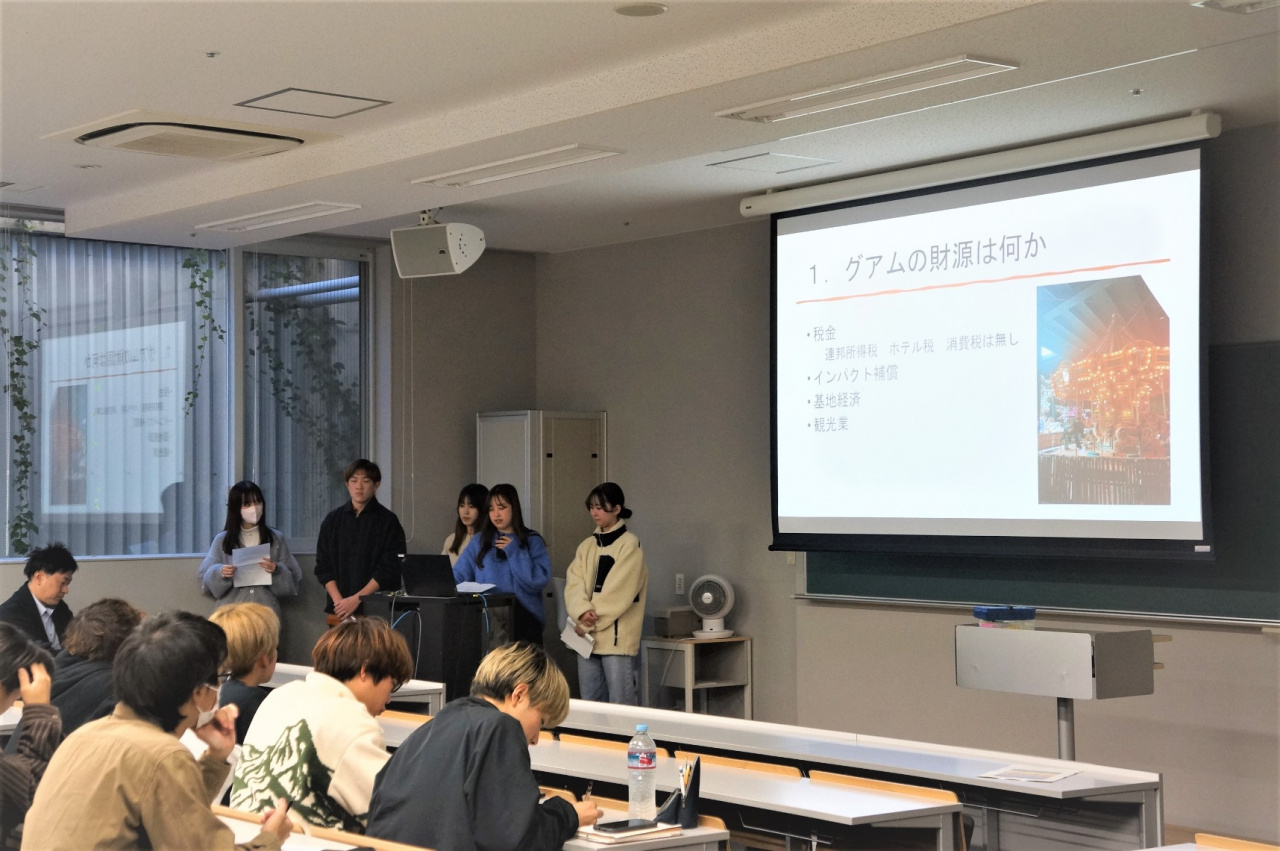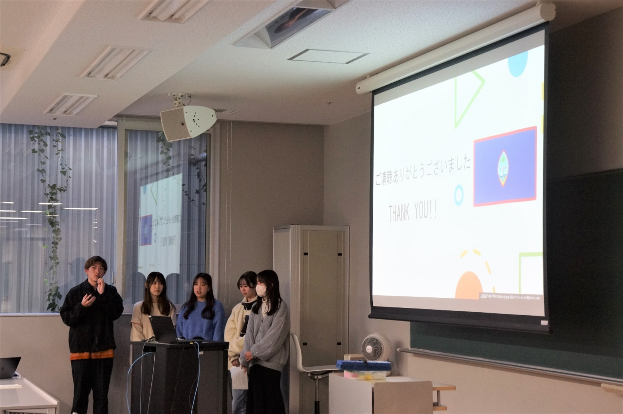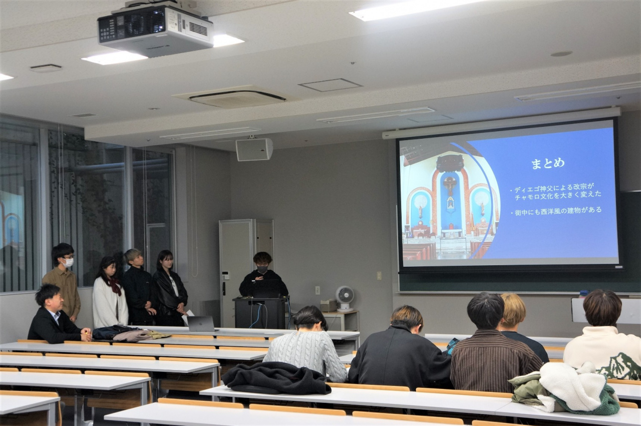 そして、その内容を約2ヶ月間でまとめ、11月22日(水)に実施報告会を開催しました。グアムで学んだ歴史・経済・観光などについて堂々と発表をし、質疑応答にもしっかりと答えていた学生たちの姿がとても印象的でした。
