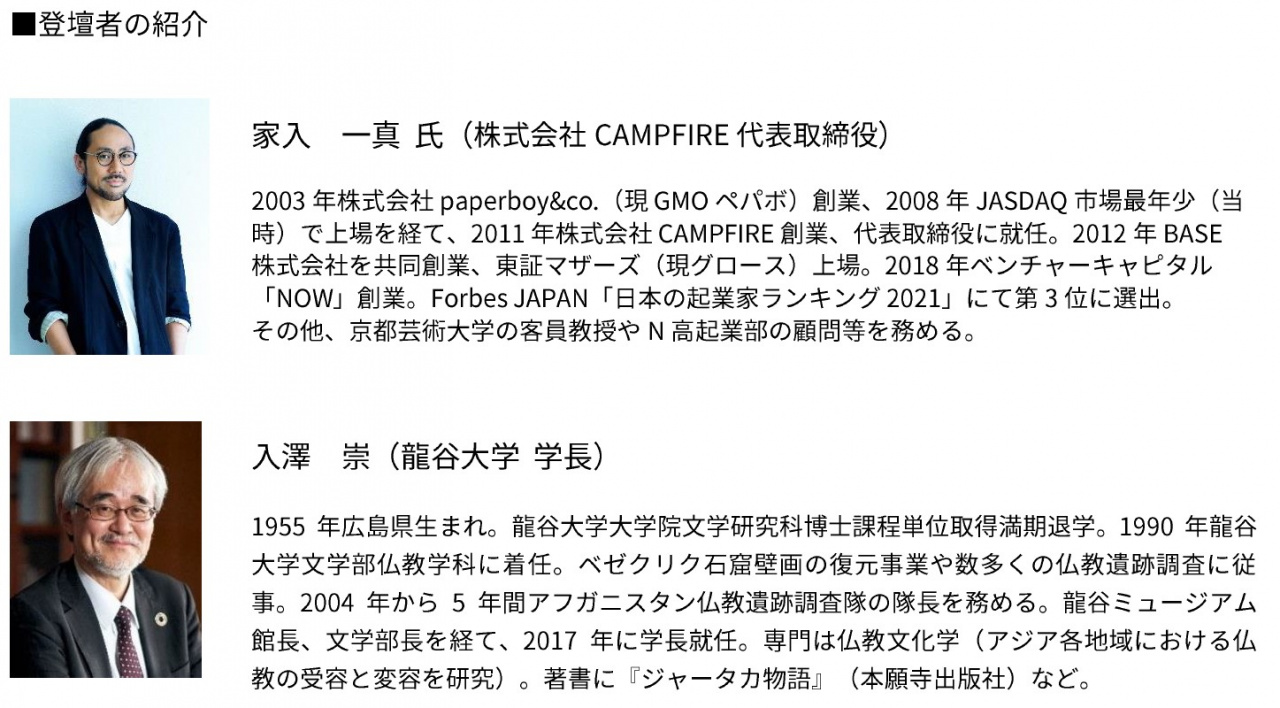 す。今回のトークイベントでは、株式会社CAMPFIRE代表取締役 家入 一真 氏を迎えます。