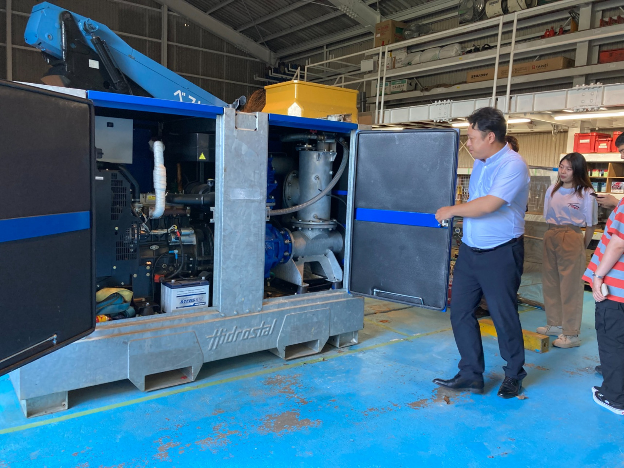洲本市から相談を受けた専務取締役福井氏は、試行を繰り返しながら吸引ポンプ車を改良した多目的モバイルユニットを開発。この機械によって大量の泥を吸い出すことが可能になりました。機械の開発ストーリーや農漁業への効果を学生がまとめ、賞に応募します。