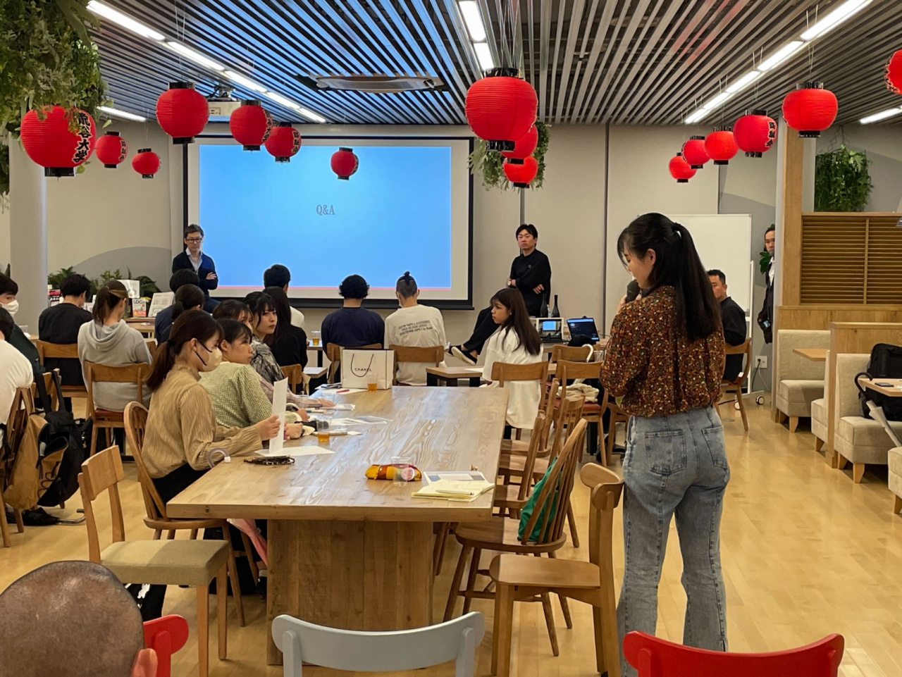 イベントは、株式会社京伝びとの梅原英哉氏とのクロストークの形式で行われ、野口氏からは「自身の意思として、正解は探すものではなく、創るもの」「人生の主役は、他人ではなく自分」といった考え方が共有されました。また、野口氏が「好きか嫌いか。綺麗か汚いか。」を物事の判断基準として重要視しているということに関して、学生は大きく反応していました。学生からの「どのように自身にとって魅力的な出会いを増やしたか」といった質問に対して、「好きなことを突き詰めれば、魅力的な出会いに自然とつながる。魅力的な人に会いに行くより、来てもらう心持ちでいること。」といったアドバイスをいただきました。