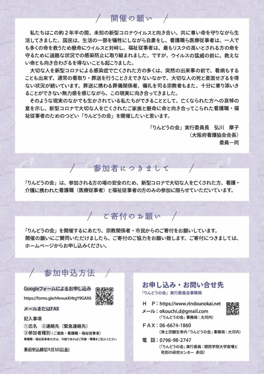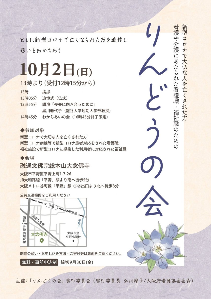 龍谷大学 社会的孤立回復支援研究センター(SIRC)は、新型コロナで大切な人を亡くされた方・看護や介護にあたられた看護職・福祉職のための「りんどうの会」の開催趣旨に賛同し、10月2日(日)開催のイベントをご案内します。