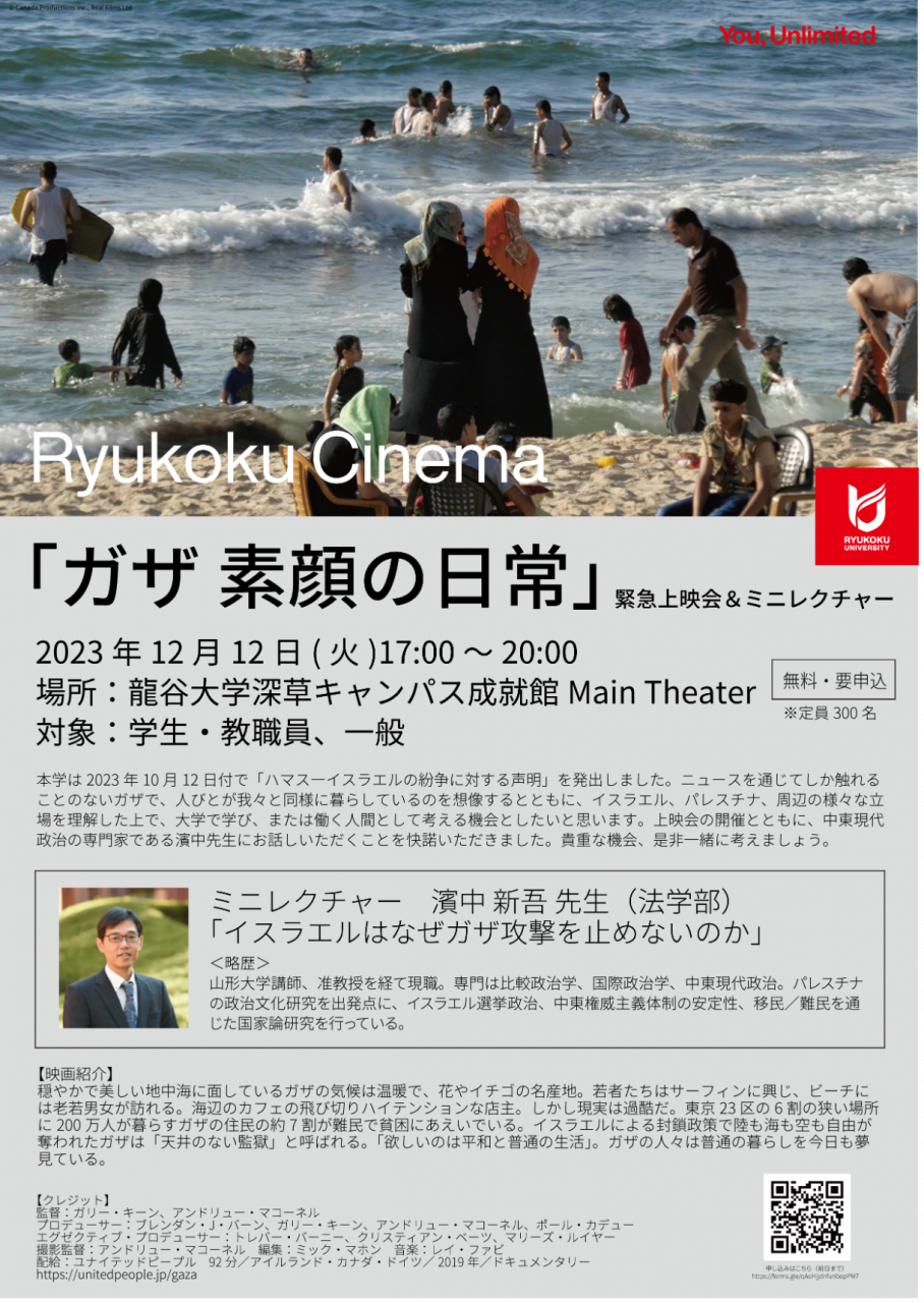 12/12 Ryukoku Cinema「ガザ 素顔の日常」緊急上映会&ミニレクチャー