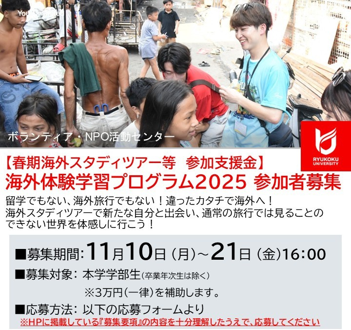 【応募期間11/10-11/21】2025年度海外体験学習プログラム参加者募集