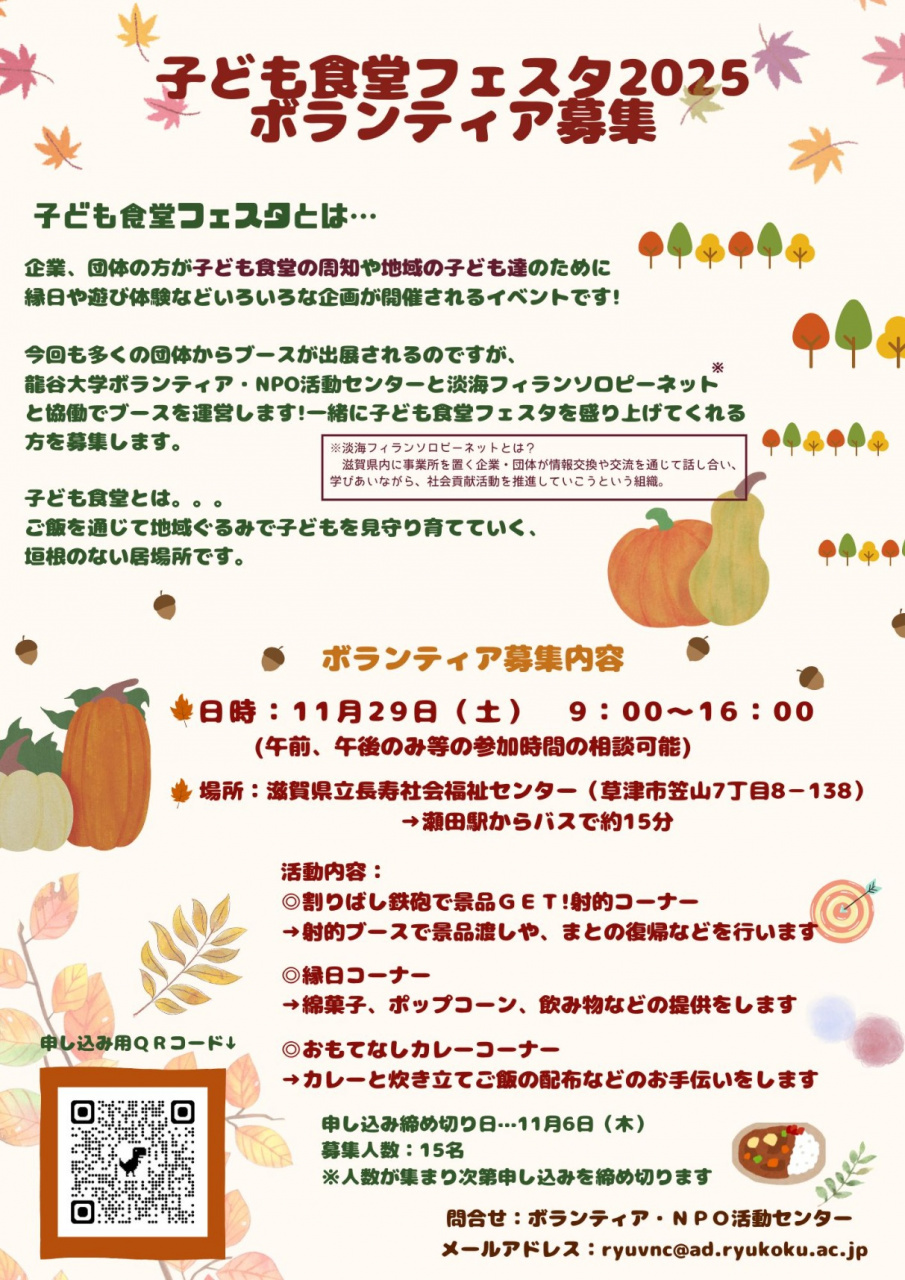 【募集終了】11/29 子ども食堂フェスタ2025ボランティア