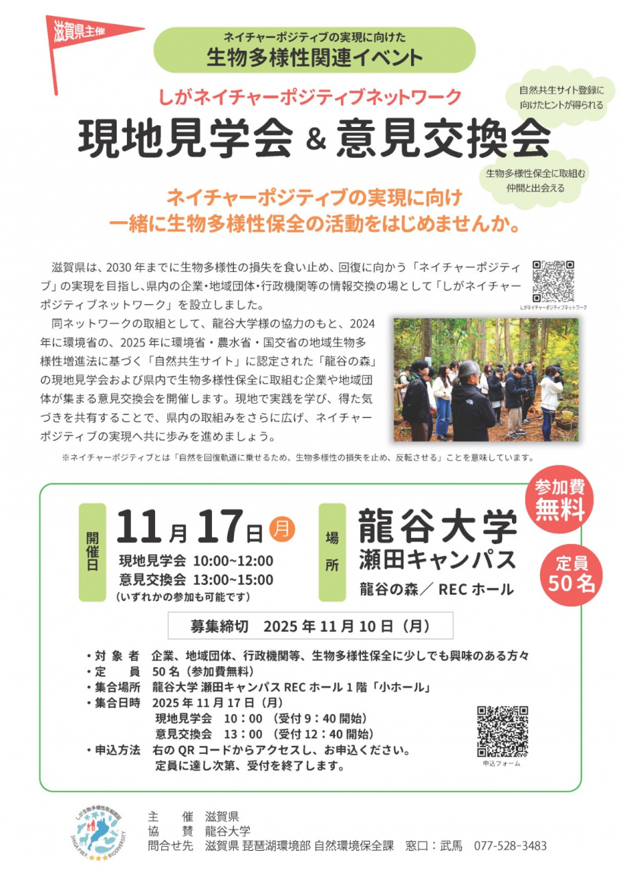 ▷しがネイチャーポジティブネットワーク~現地見学会&意見交換会の開催~参加者募集!!|滋賀県ホームページ