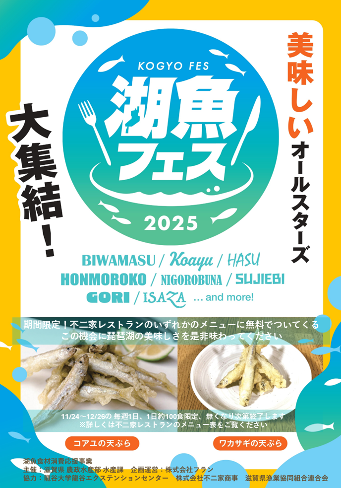 こちらは滋賀県農政水産部水産課様が主催されている「湖魚食材消費応援事業」によるもので、