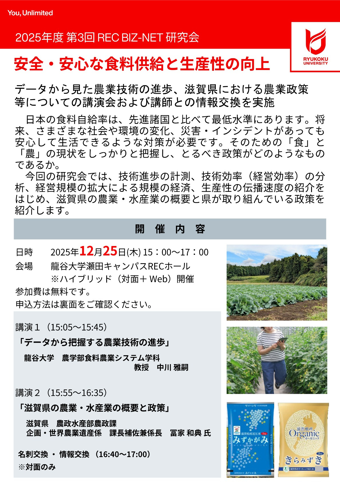 【2025年度 第3回 REC BIZ-NET 研究会】安全・安心な食料供給と生産性の向上
