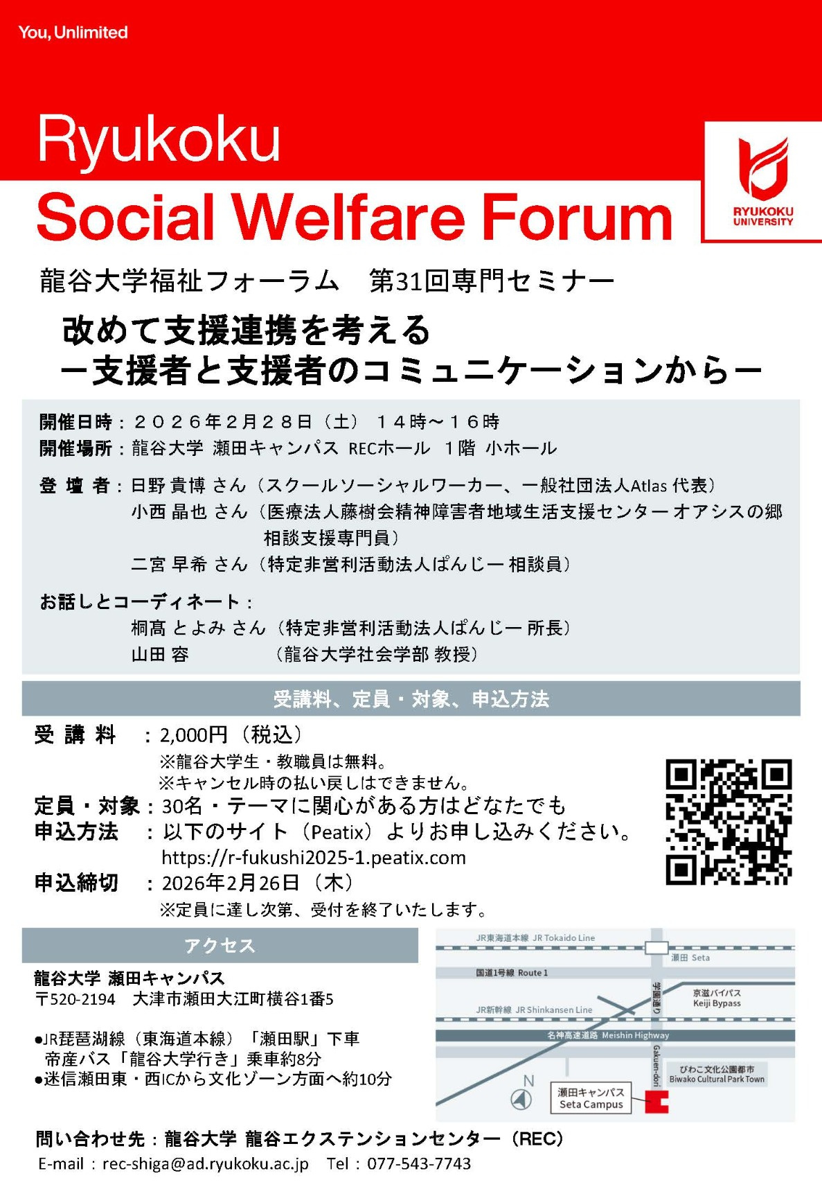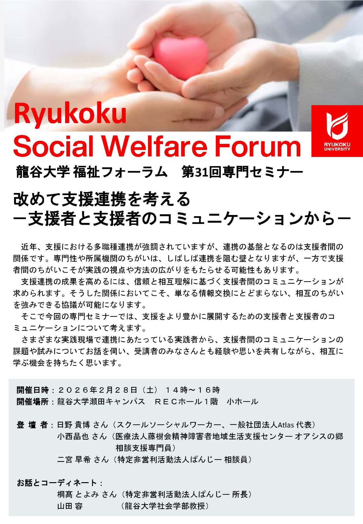 【龍谷大学福祉フォーラム】第31回専門セミナー「改めて支援連携を考える-支援者と支援者のコミュニケーションから-」