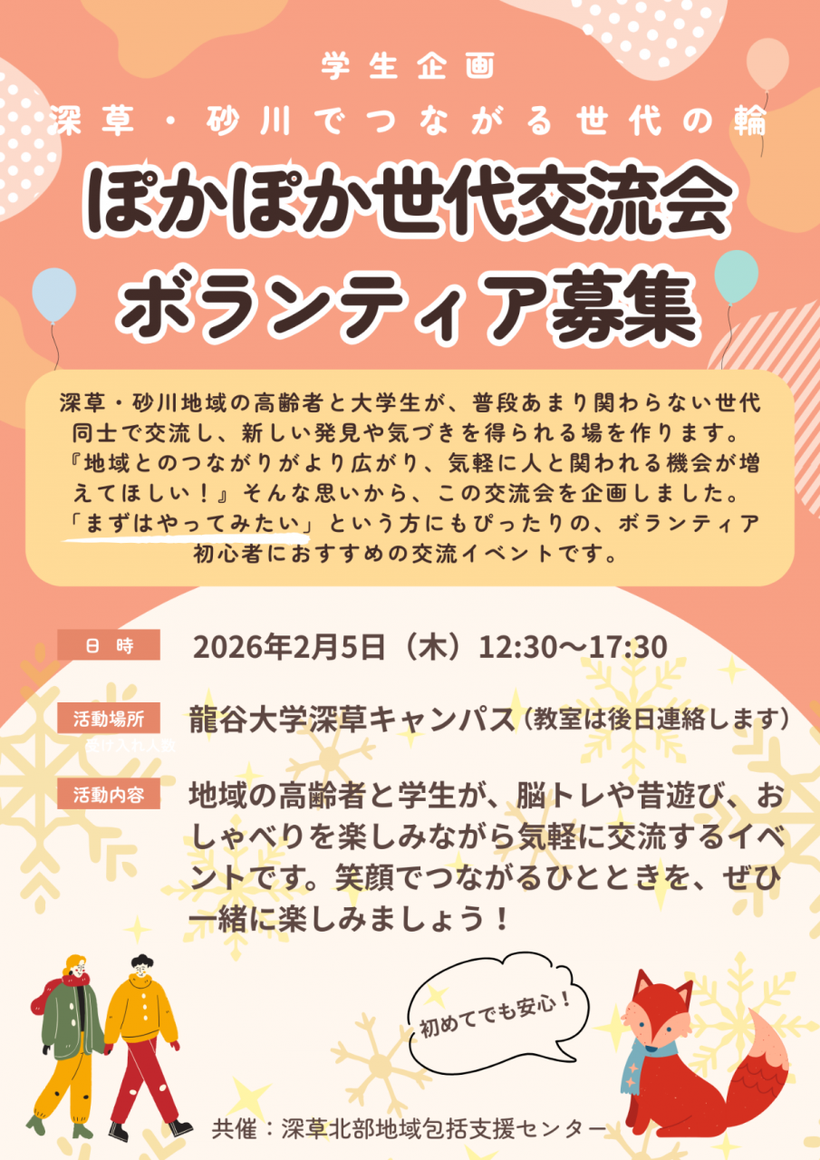 【募集】2/5 ぽかぽか世代交流会ボランティア募集