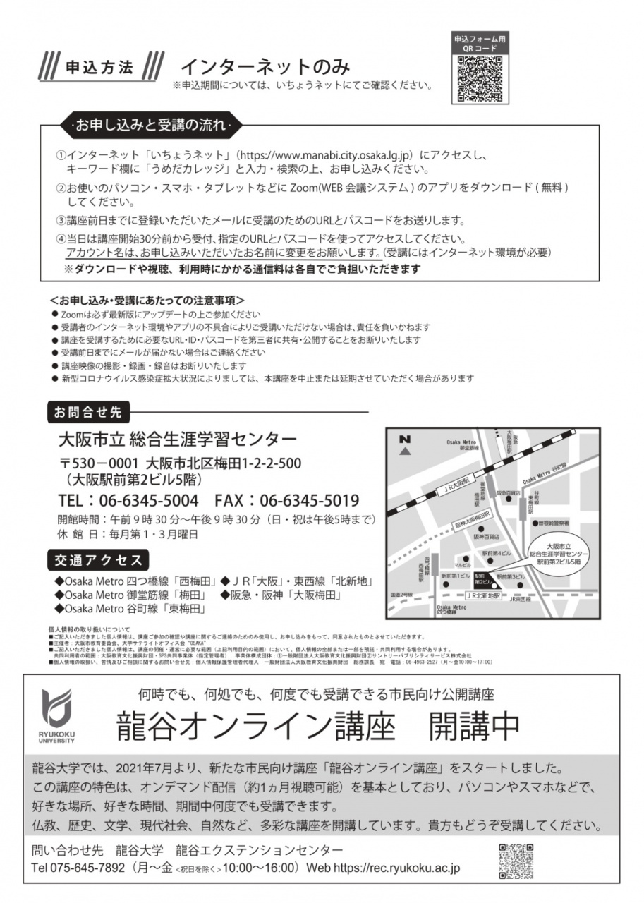 2021年度第3回「うめだカレッジ」を龍谷大学提供で開催します。