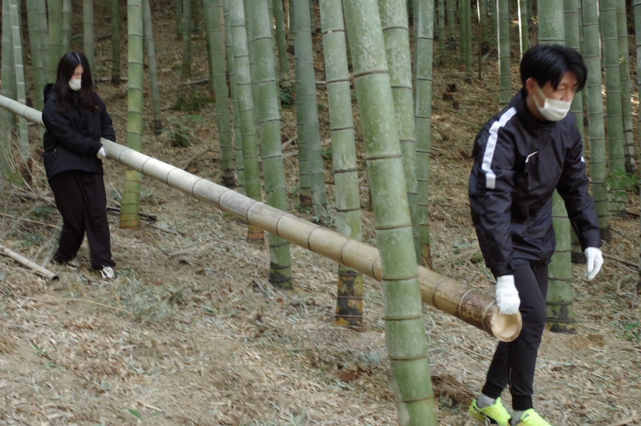 2月11日(金)に「政策実践・探究演習(国内)洲本プロジェクト(以下、洲本プロジェクト)」(担当:石倉 研講師)の第4回フィールドワークを行い、学部生7名が参加しました。この日は、洲本市安乎(あいが)町であわじ里山プロジェクトや洲本市役所の皆さんと竹林整備を行いました。