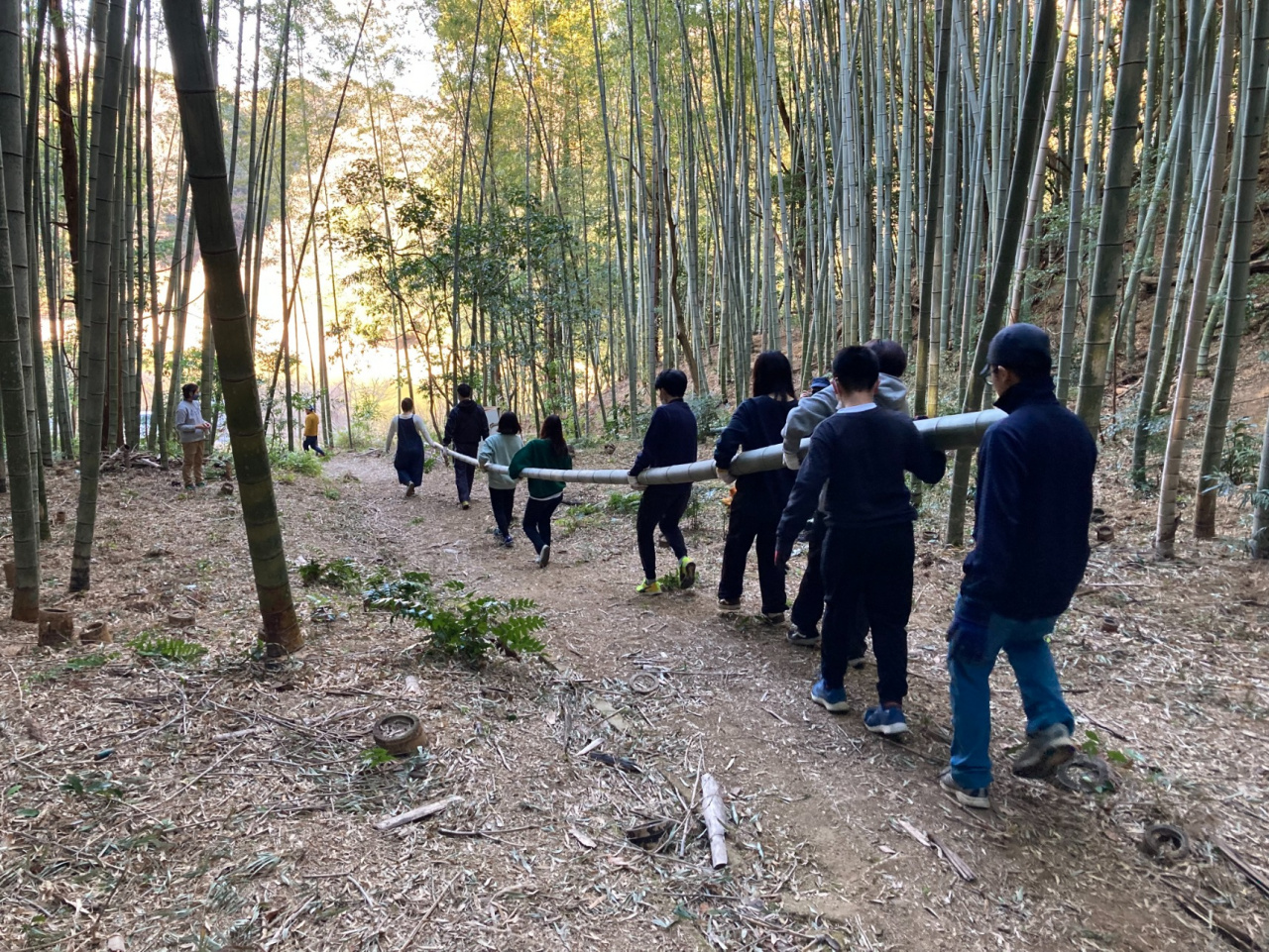 最後に養殖カキの筏に使う9メートルの青竹を切り出して、作業は終了しました。