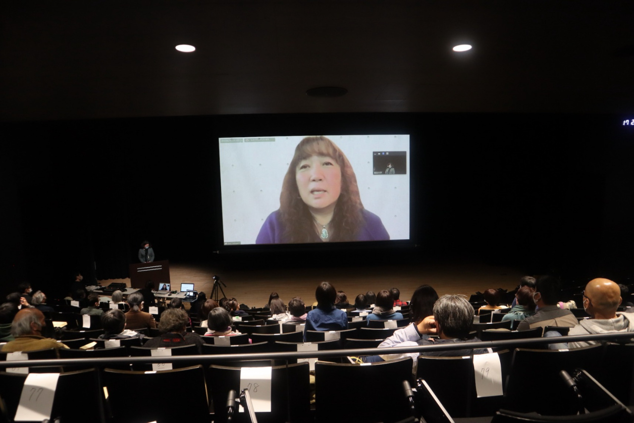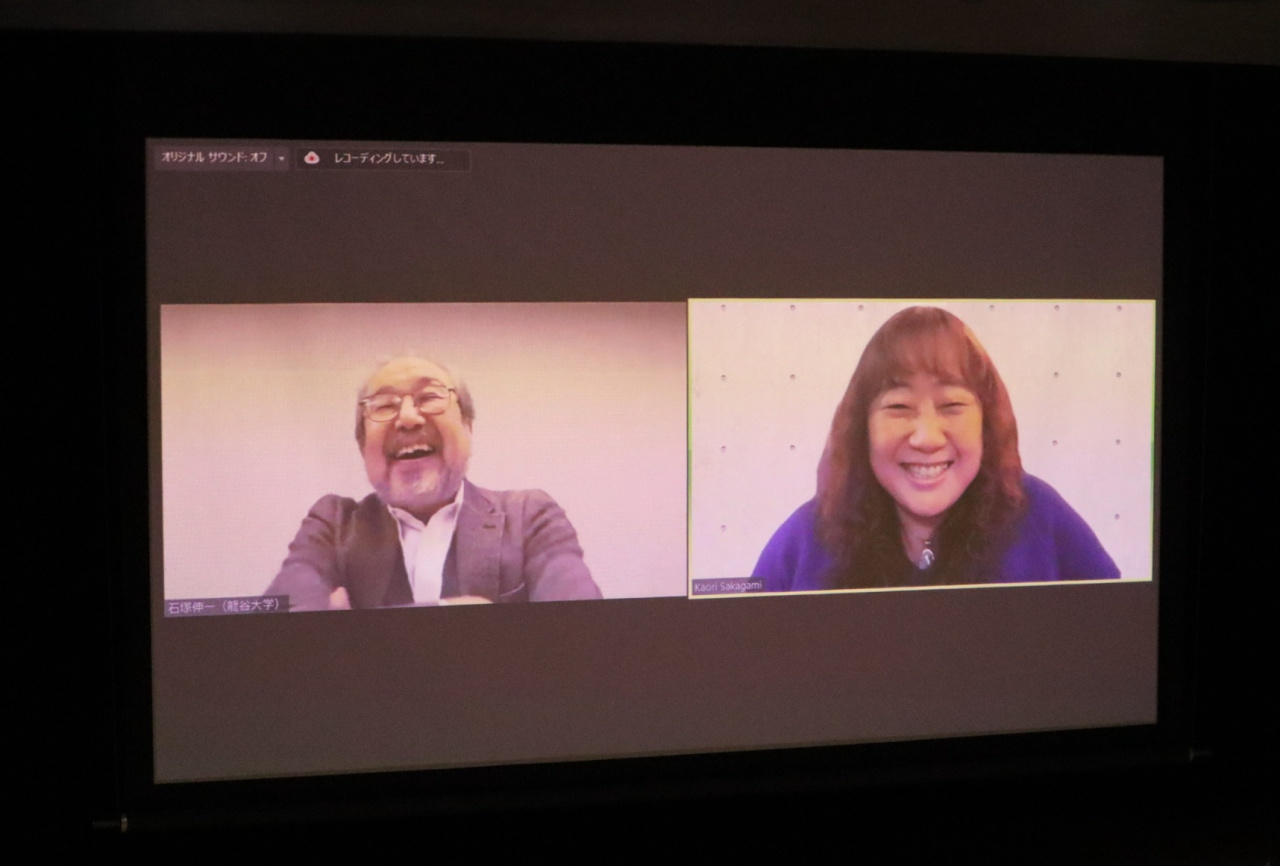 上映後、坂上香監督と石塚伸一教授(本学法学部、犯罪学研究センター長)のオンライン対談が行われました。対談では、坂上監督のテレビ業界での経験談を皮切りに、映画監督としての苦労が語られました。本作の製作に話が及ぶと、6年にもわたる施設との交渉、撮影許可が下りた後の施設内での撮影中や撮影後のエピソードなどが次々と飛び出しました。また、本作に登場した収容者の言語能力の高さについて坂上監督は、最初から高かったのではなく、辞書を引いたり、覚えた言葉を使ってみたりなど、大変な努力をしていた、と述べました。さらに、TCに参加している人たちは積極的な人が多く、話そうという意思が強いことに驚き、刑事施設の外の人のほうが自分を語れる人が少ないと感じたということが語られました。