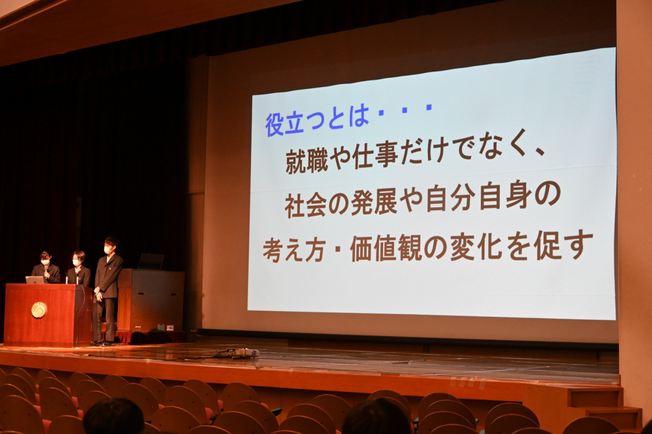 付属平安高等学校高大連携プログラム(入学前プログラム)のプレゼン大会を付属平安高等学校講堂で開催【文学部】
