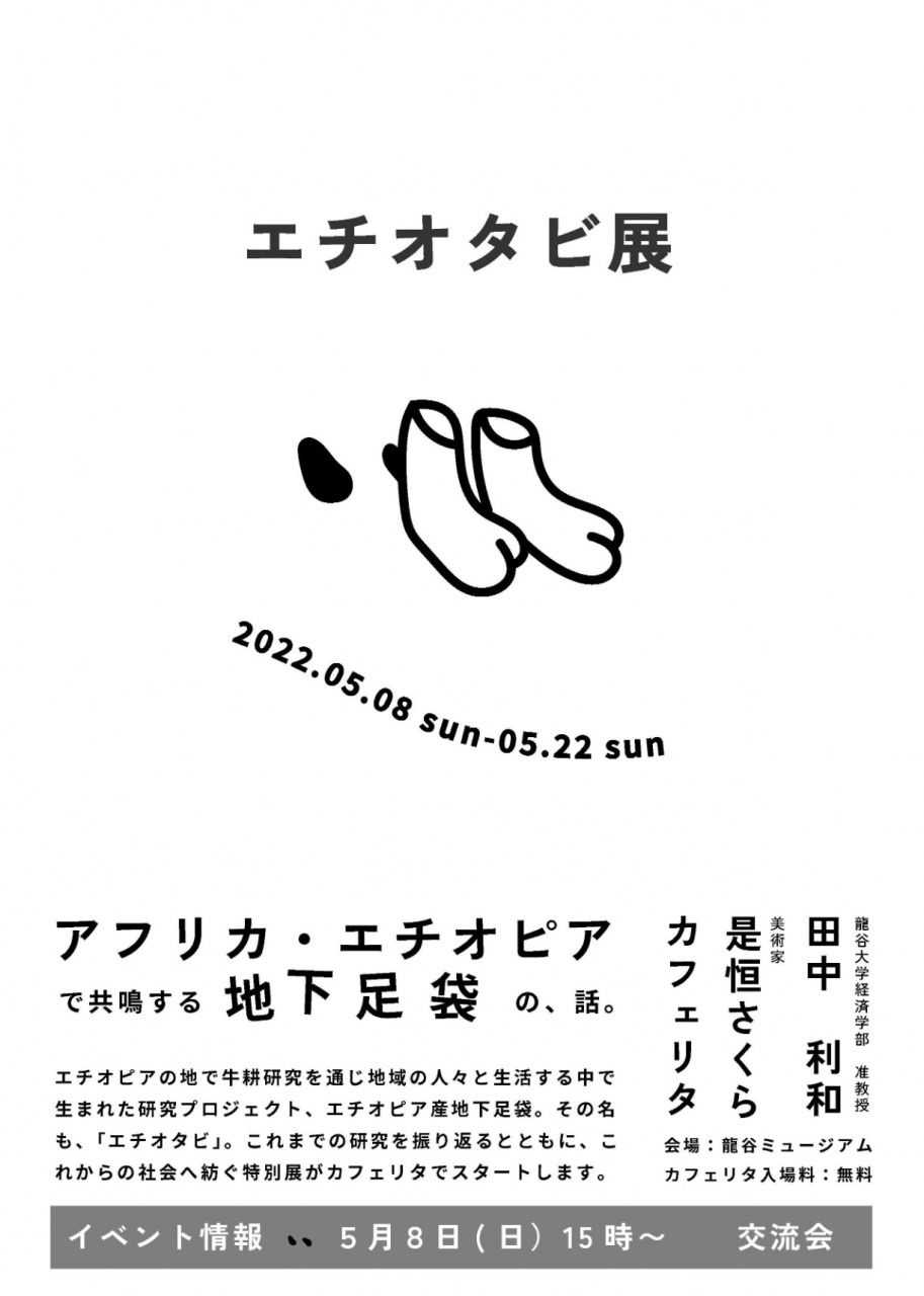 龍谷大学経済学部田中利和准教授、美術家是恒さくらさん、そしてカフェリタのコラボでお届けする「エチオタビ展」が5月8日からカフェリタにてはじまります。
