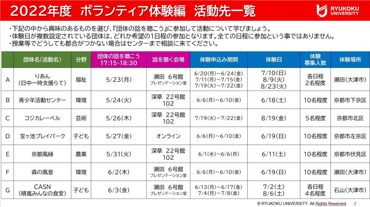 「大学生活でボランティア活動を始めてみようかな」「ボランティアに興味はあるけど、どうしたらいいの?」と思っている、そんなあなたにおススメの講座です。