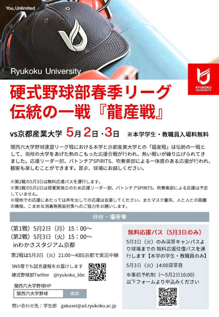5月3日には無料応援バス(本学学生・教職員のみ)を運行します。