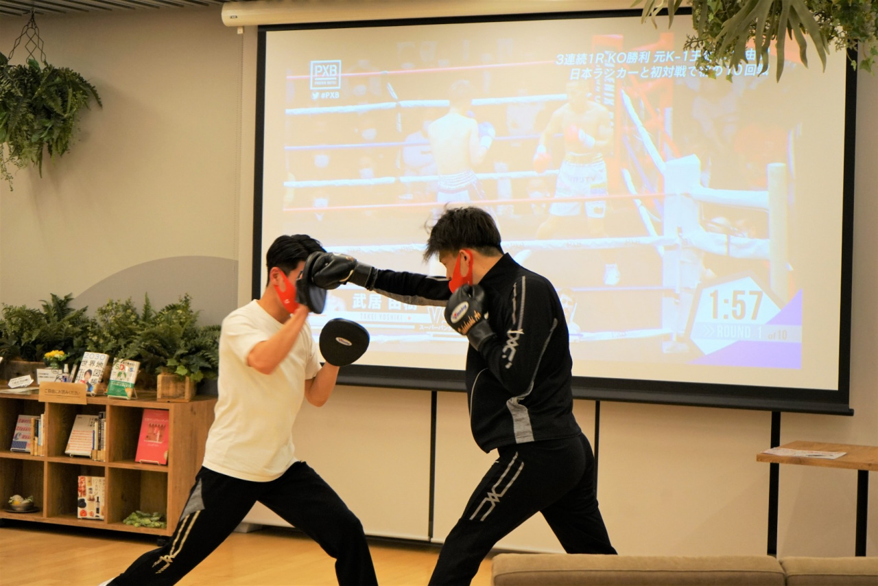 初防衛戦が行われ、本学では成就館のCafé&でパブリックビューイングを開催しました。