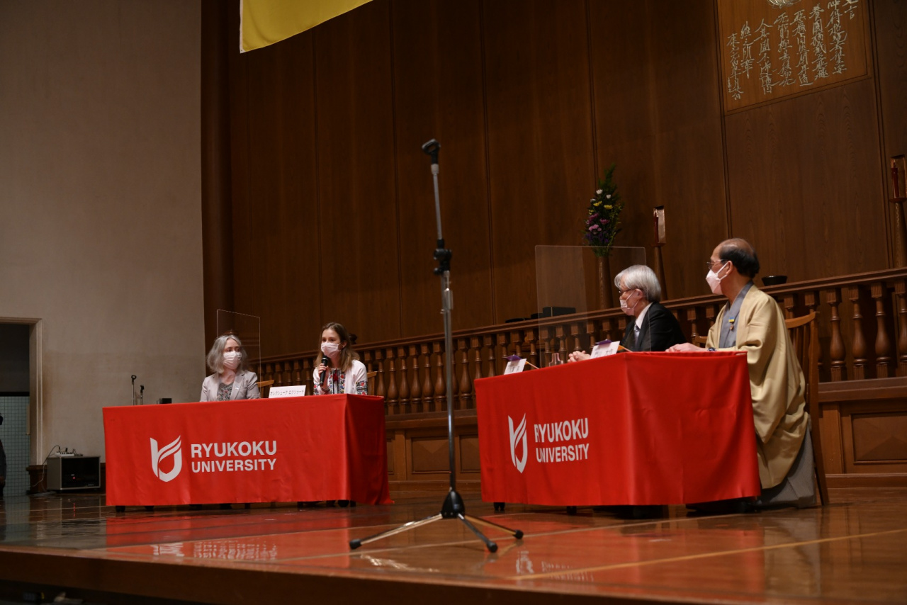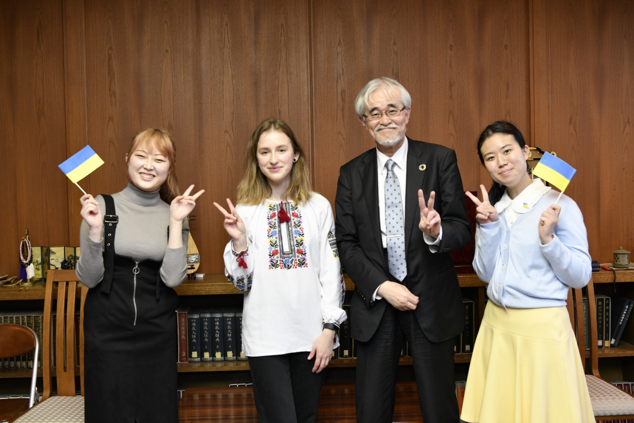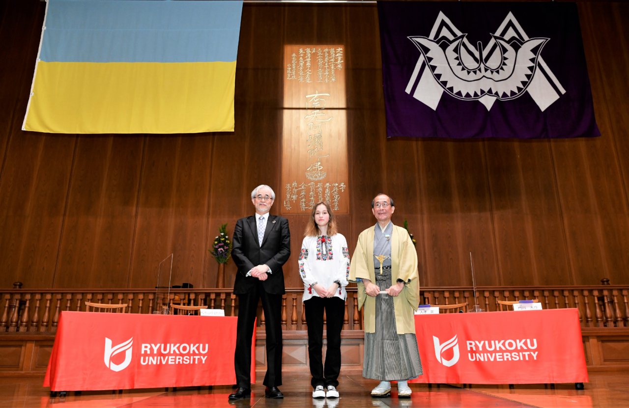 ・龍谷大学は「平和に寄与するプラットフォーム」を目指しています。日本語・日本文化に強い関心を抱かれているロクソラーナさんには、ぜひウクライナと日本の架け橋となられるよう願っています。(龍谷大学 入澤崇学長)