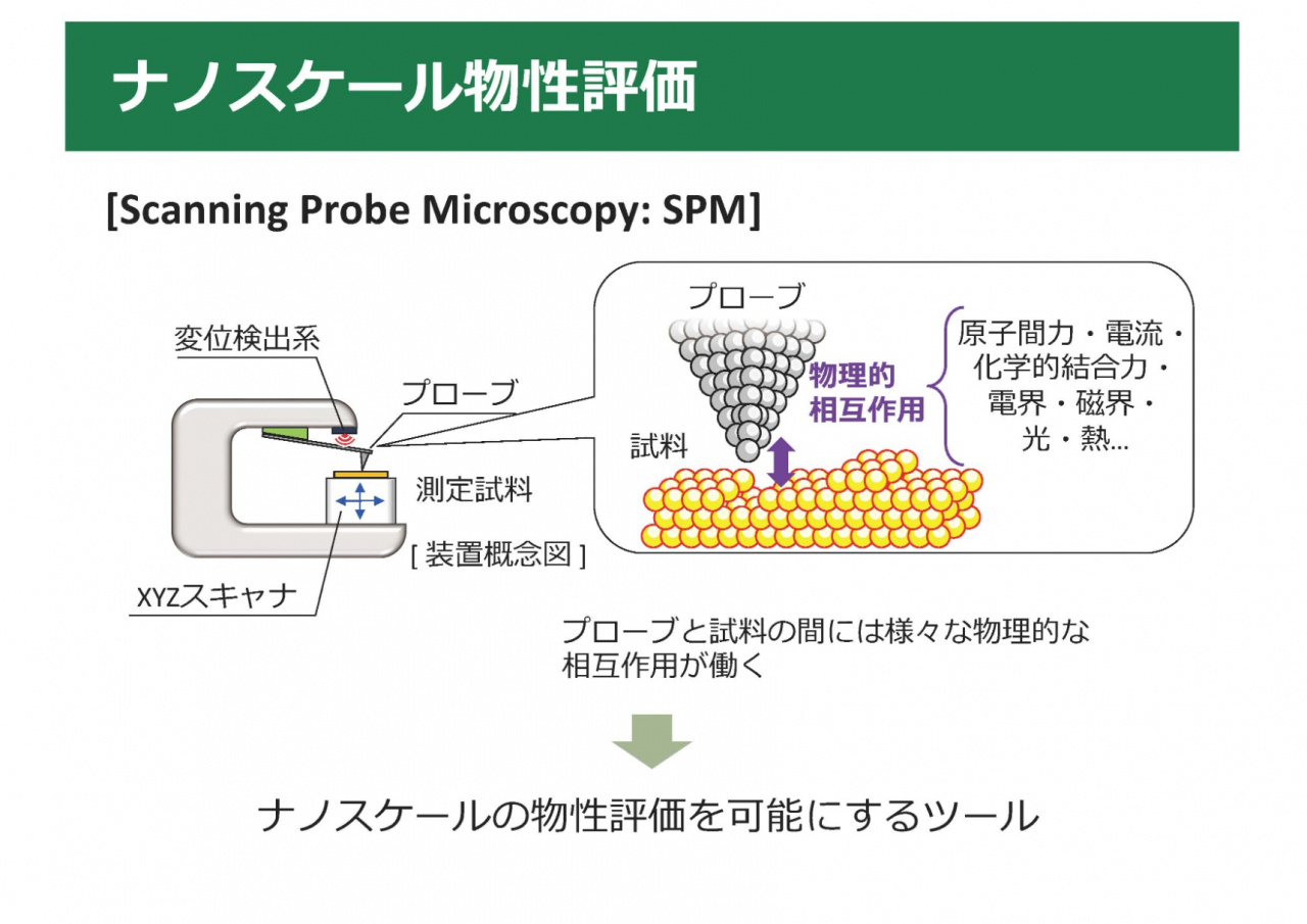今回のBIZ-NET研究会は、原子間力顕微鏡や走査プローブ顕微鏡による原子レベルの計測技術の研究を進めている本学の教員と、半導体や燃料電池をはじめナノマテリアル材料などの原子レベルの分析を行っている企業による講演でした。
