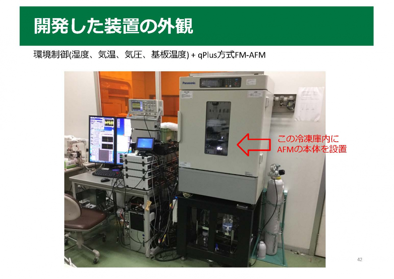 今回の研究会では、局所の電子物性や機械特性など、さまざまな物性評価も実施可能な手法である走査プローブ顕微鏡(SPM)や原子間力顕微鏡(AFM)の原理から応用までをお話いただきました。走査プローブ顕微鏡(SPM:図1)や原子間力顕微鏡(AFM)の原理のご紹介の後、それらの応用として、宮戸先生が新たに試みられている雪氷結晶観察の研究と、そのために独自開発された原子間力顕微鏡(AFM:図2)もご紹介いただきました。聴講者からは、宮戸先生が独自開発された原子間力顕微鏡(AFM)について、使用されているセンサや信号処理に関して熱心な質問がありました。