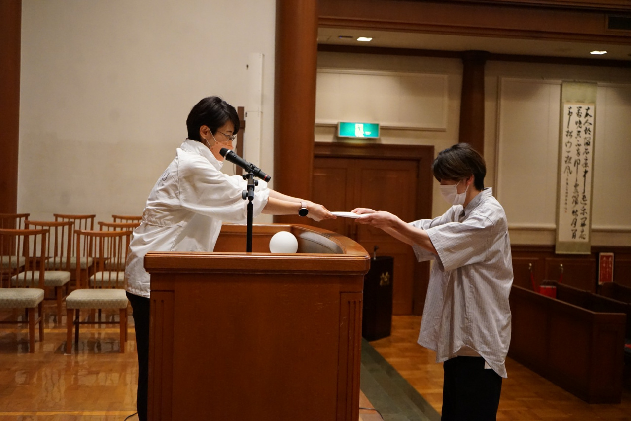 深草学舎では学生生活主任の許 秀美先生から、賞状が授与されました。
