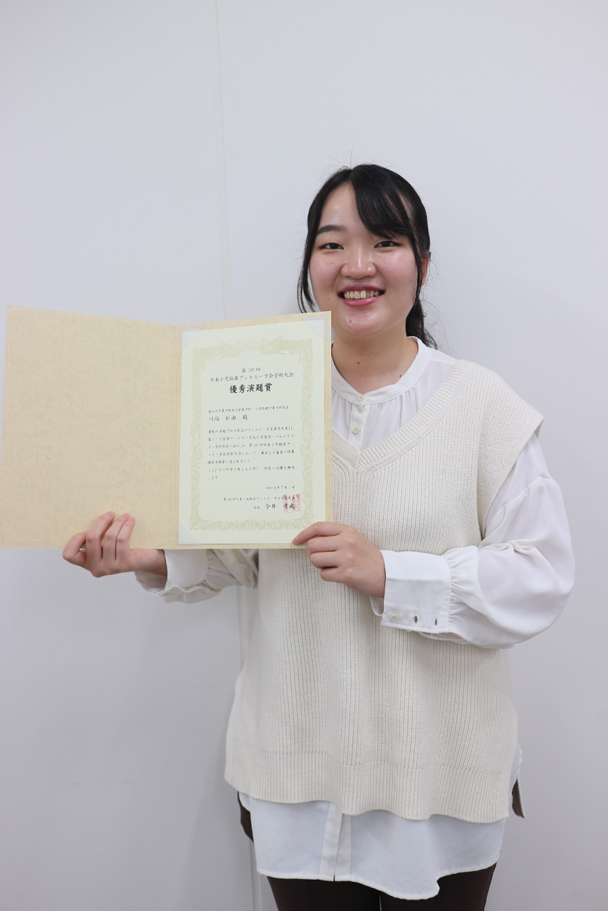 7月2日〜3日に東京で開催された「第38回日本小児臨床アレルギー学会学術大会」において、農学研究科修士課程1年生の川端彩由さん(小児保健栄養学研究室)が応募した演題が、優秀演題賞を受賞しました。