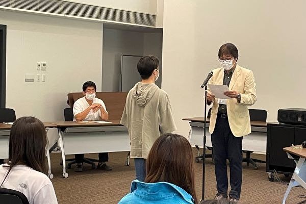 「新型コロナウイルス感染症の影響で大変な中だったけれど、皆さんががんばってこられたことを教職員一同嬉しく思います。日本人は自分をアピールすることがなかなかできないが、これから必要となってくるスキルです。アカデミック・スカラシップ奨学生に応募したということは皆さんにはアピールできる力があると思います。 世界には、自分たちと同じように学んでいる仲間たちがいて、いろんな境遇でがんばっていることにも思いをはせながら、これからも学修に励んでください。」