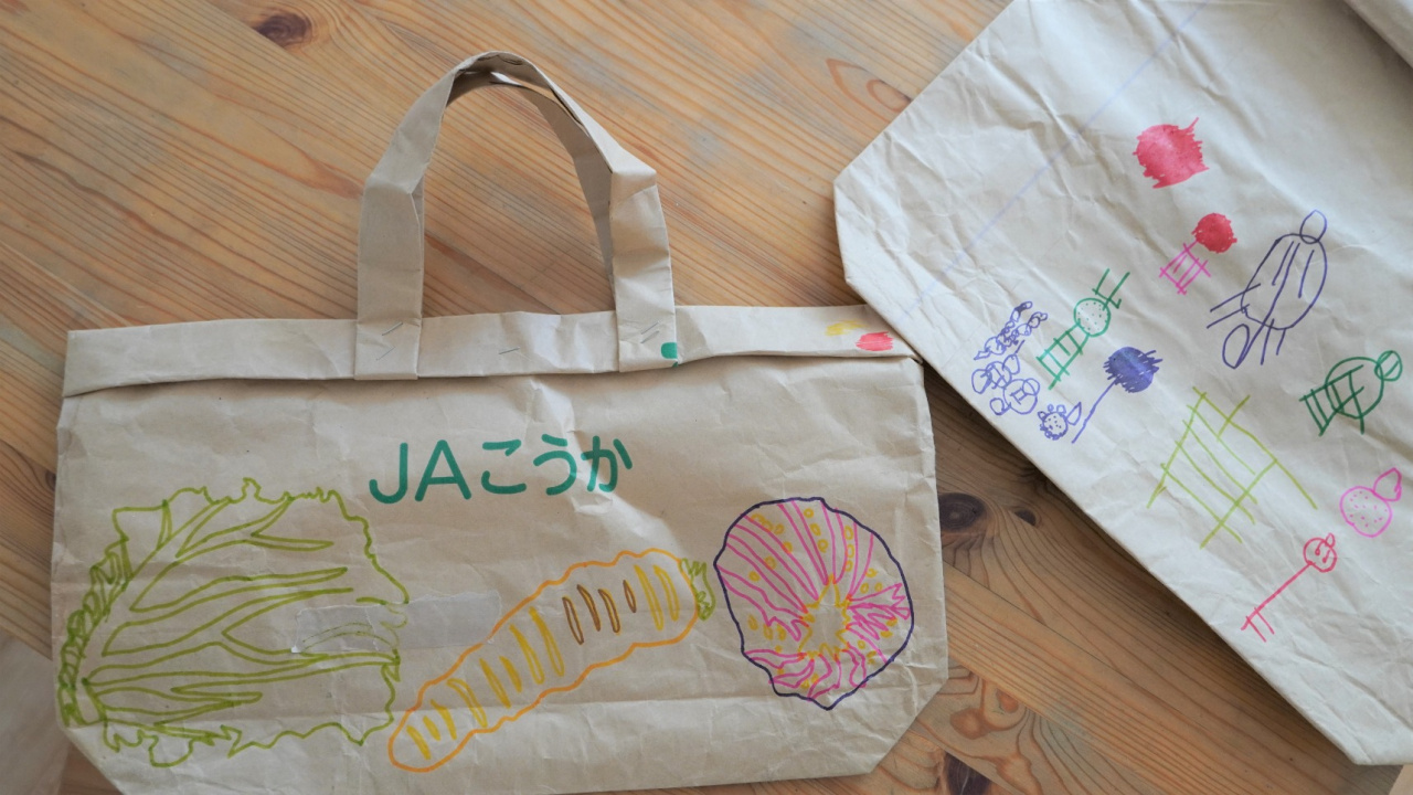 受講生たちは、とても丈夫な紙製の米袋という消費者が普段あまり目にしない農業資材を使い、農や食との豊かな関わりがあることを多くの人に知ってもらえたらという“おもや”の方々の思いを生かし、ワークショップを企画しました。また、マーケットで“おもや”の一部としてワークショップに参加することで、“おもや”のメンバーやスタッフ、さらには他の出店者やお客さまとコミュニケーションをとって交流を深めるとともに、企画への自主的な参加による自主性を養うことも目的としています。
