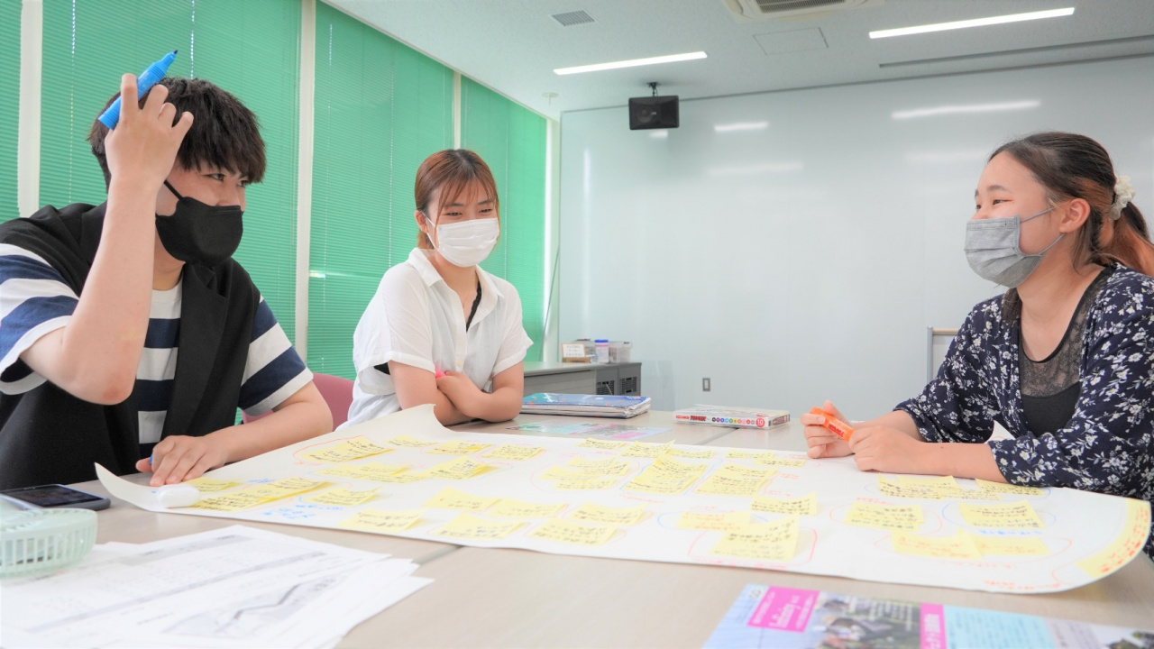 同チームの吉川真穂さん(現代福祉学科2年生)は、語学教室の課題に興味を持っていて、教室に来ている生徒さんの子どもを預ける場所がない問題や、教室の中でも同じ国籍の方々で集まる傾向にあり、ひとりになってしまう方もいるので、そうならないような工夫が出来ないかといった具体的な課題に興味を感じていることを話してくれました。
